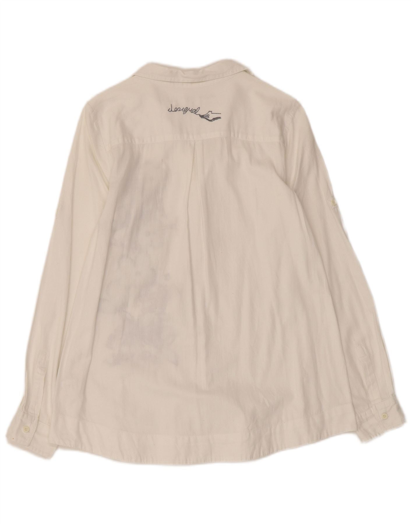 DESIGUAL Womens Graphic Shirt UK 10 Small White Floral Cotton