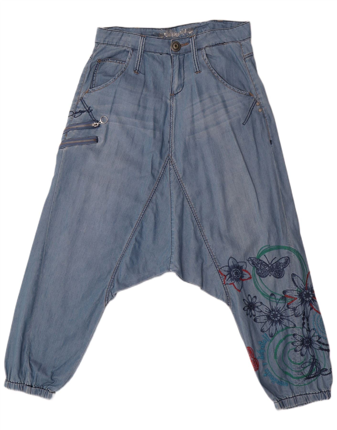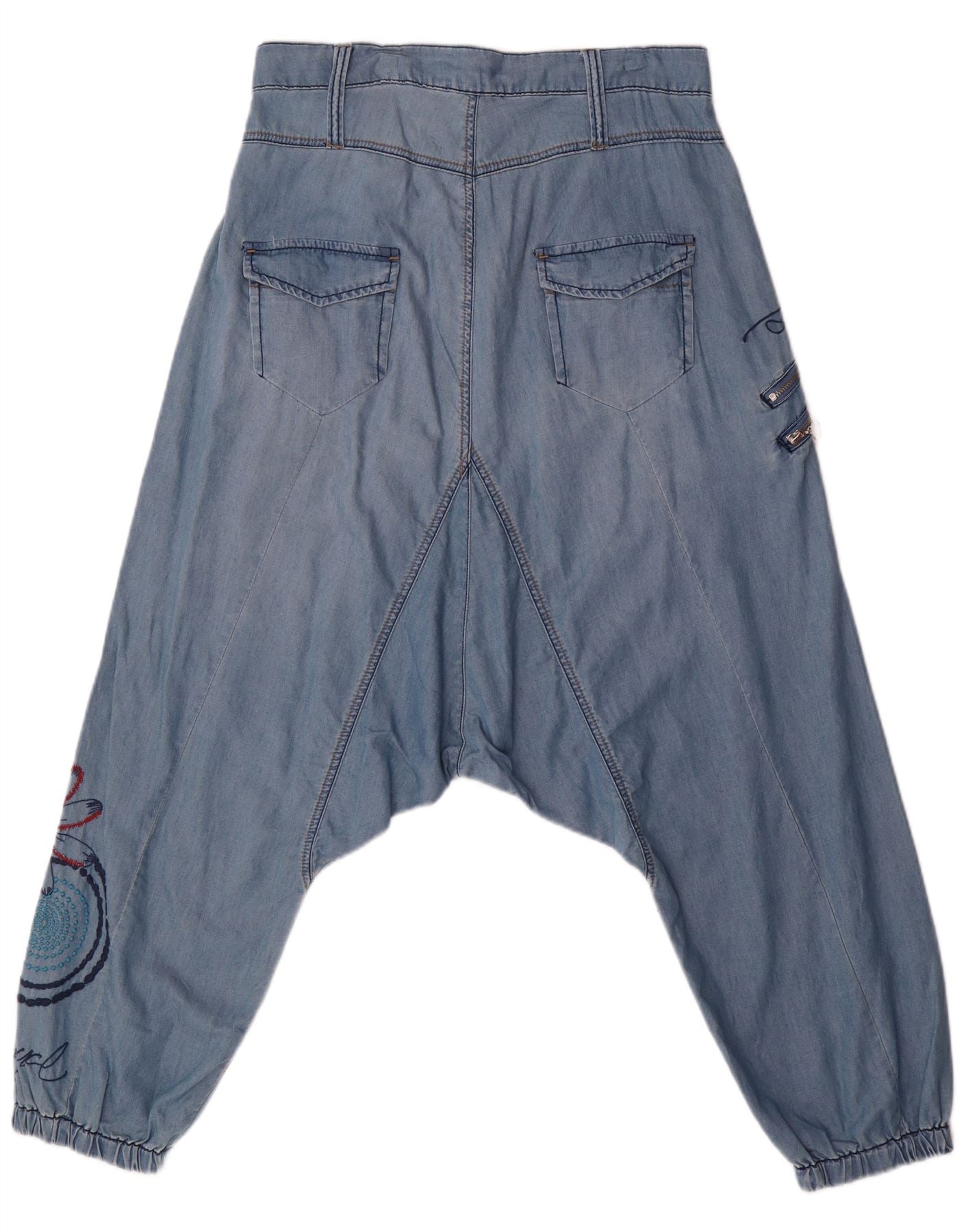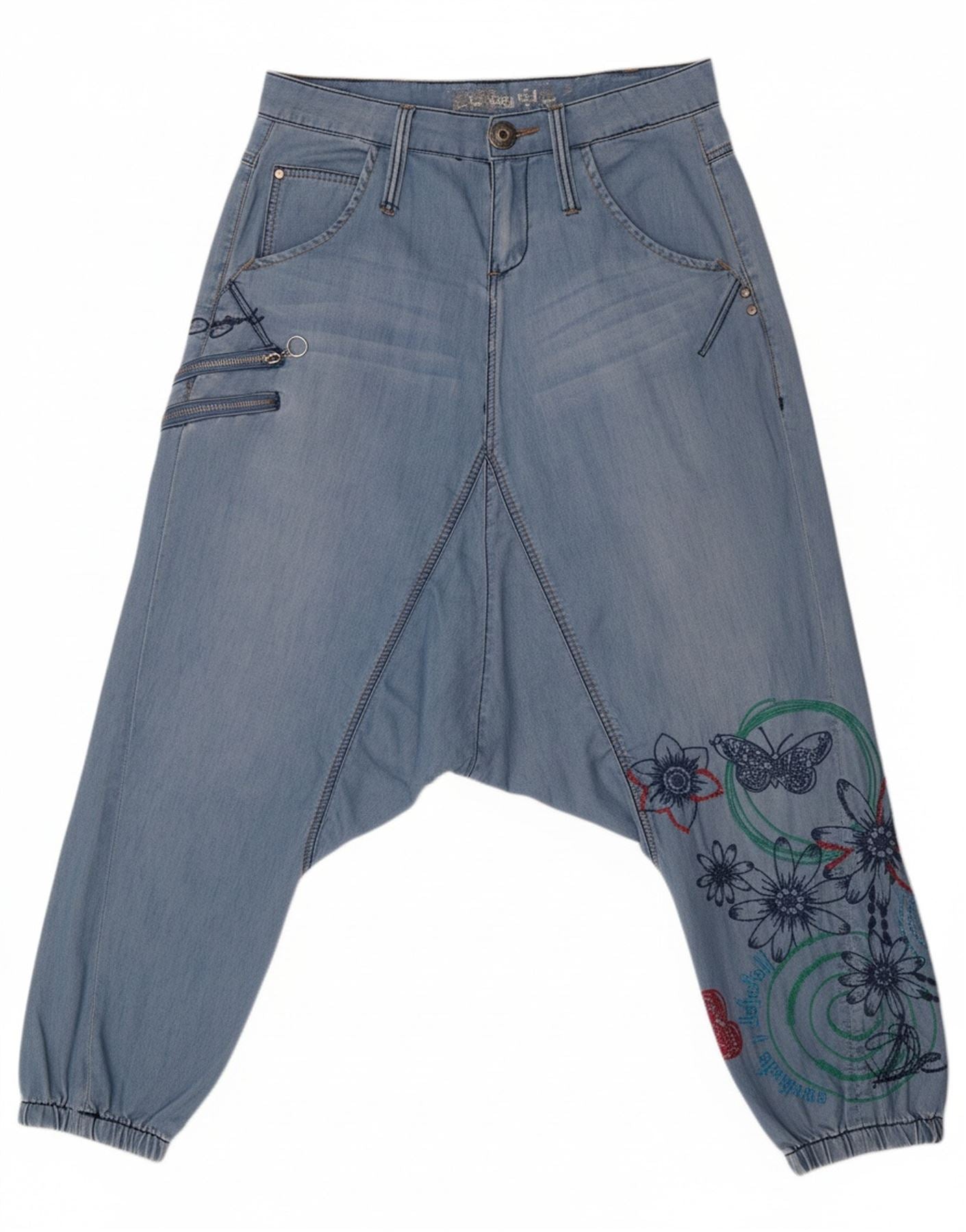 DESIGUAL Womens Harem Drop Crotch Jeans W30 L20 Blue Floral Cotton