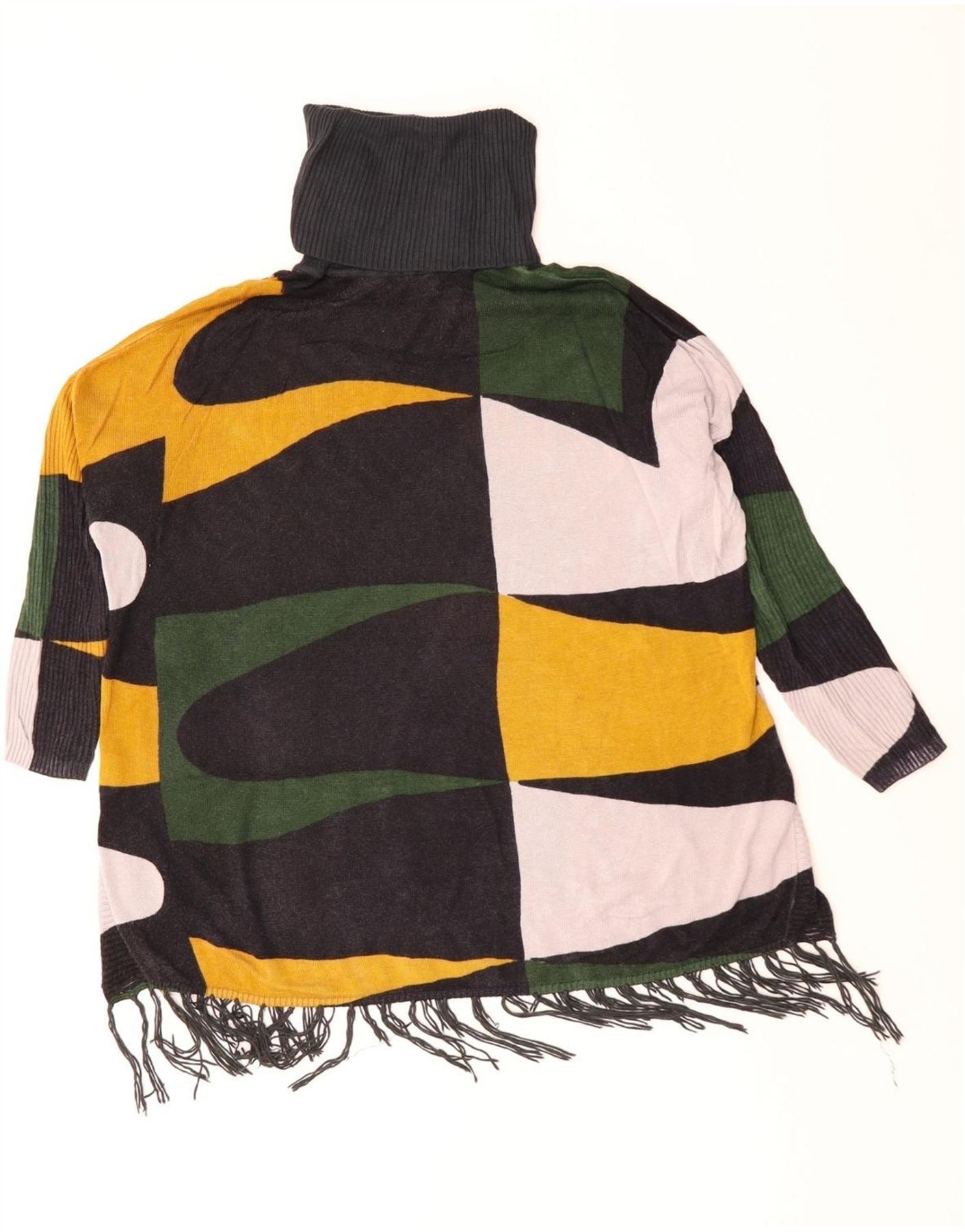 Desigual Womens Roll Neck Jumper Sweater UK 10 Small Green Geometric