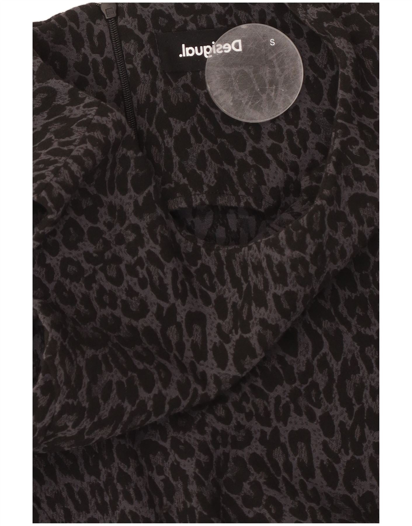 DESIGUAL Womens Sleeveless A-Line Dress UK 8 Small Grey Animal Print