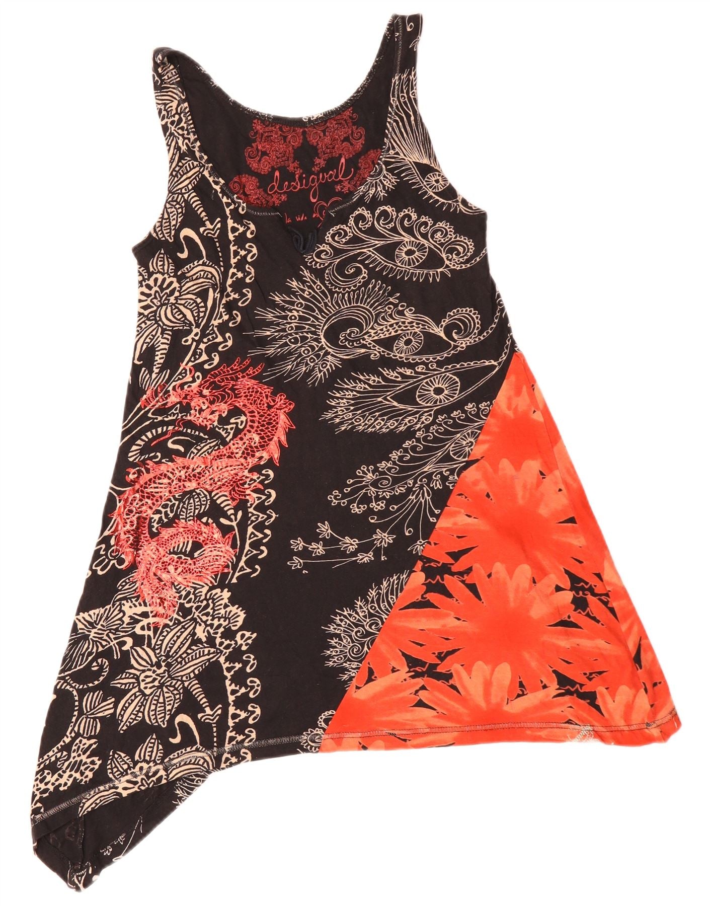 DESIGUAL Womens Sleeveless Asymmetric Tunic Top UK 10 Small Black Floral