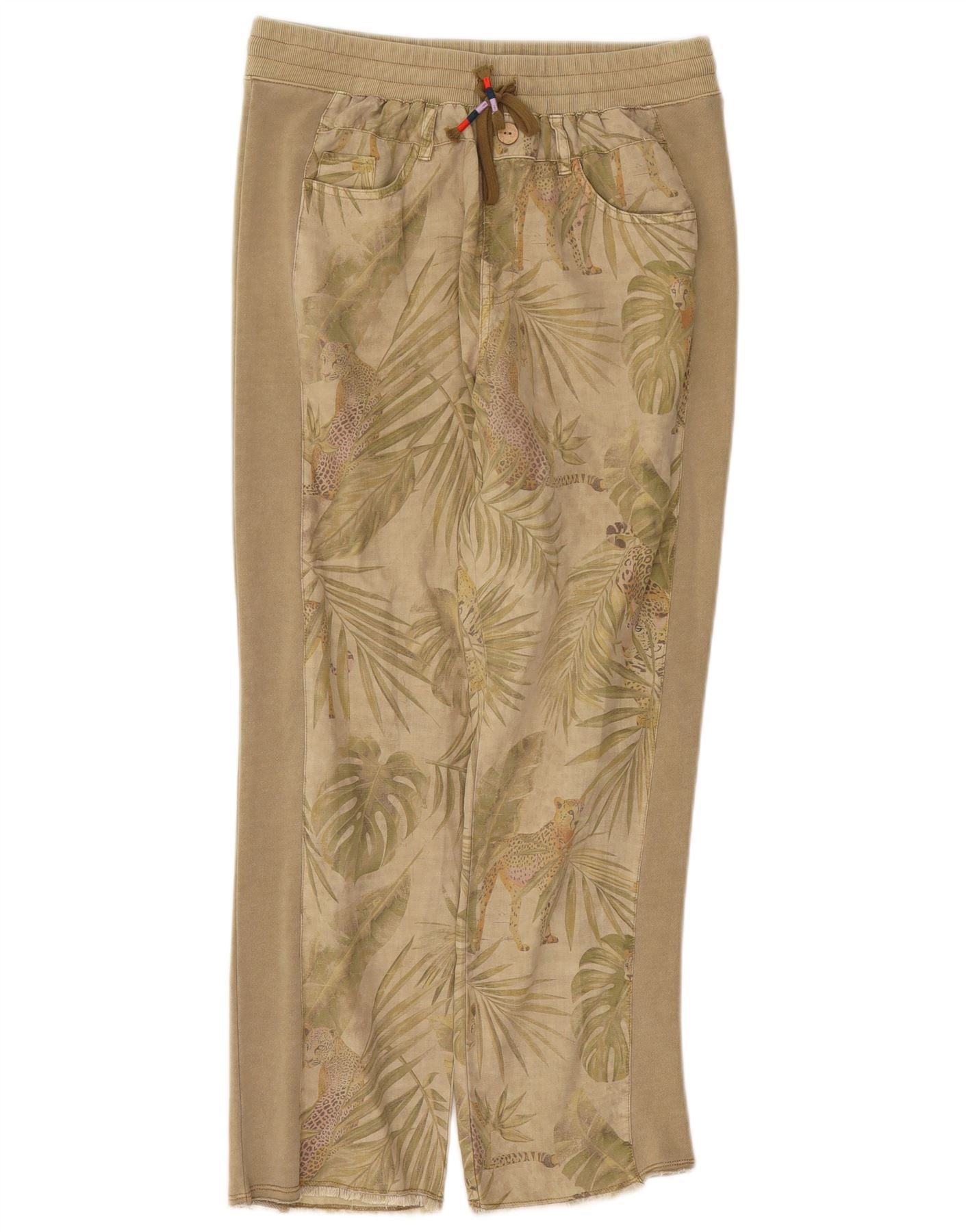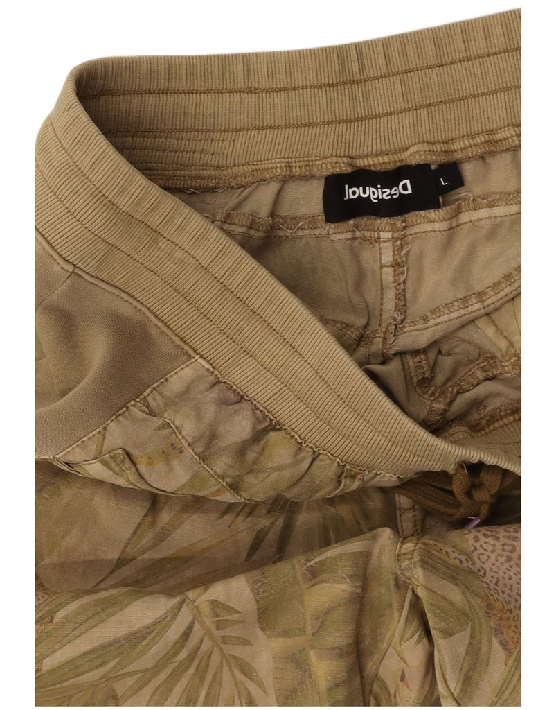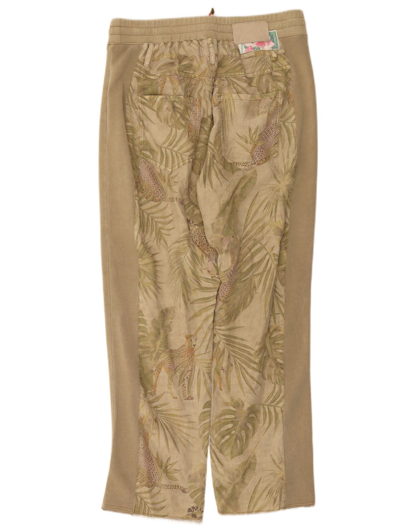 DESIGUAL Womens Straight Casual Trousers Large W32 L27 Khaki Floral