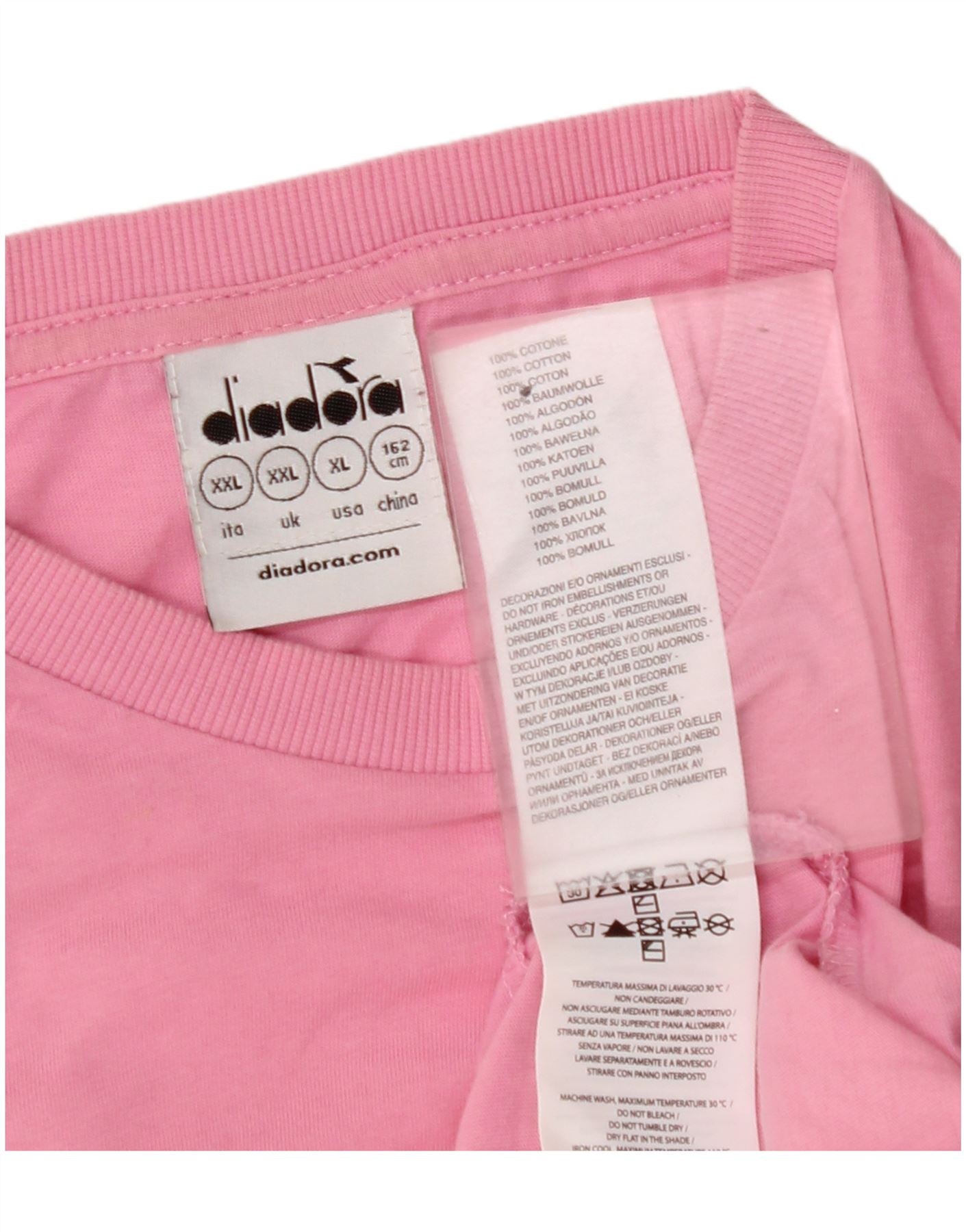 DIADORA Girls T-Shirt Top 13-14 Years 2XL Pink Cotton