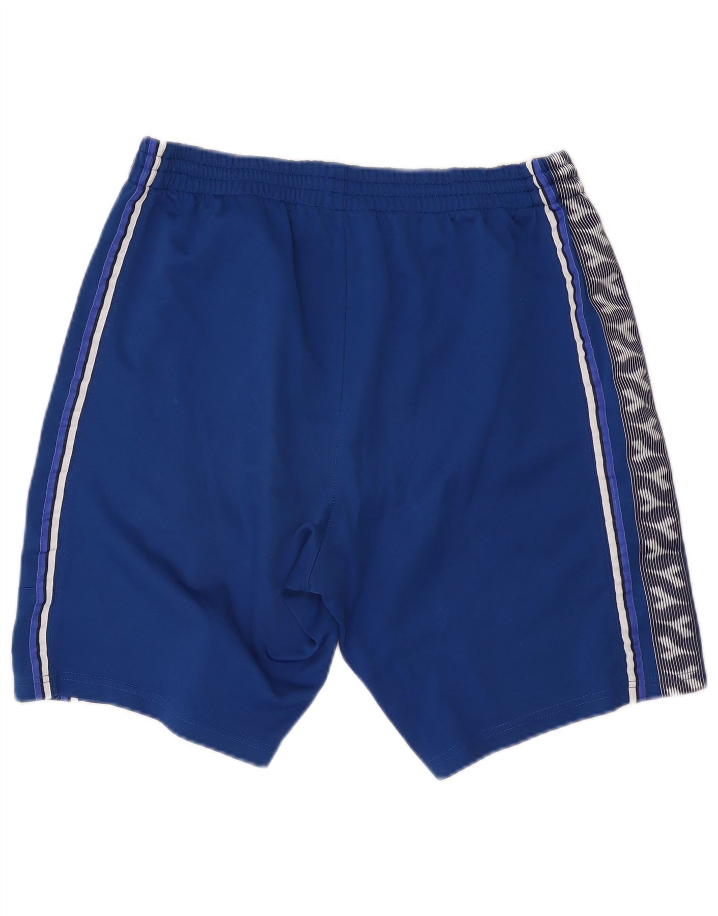 - AI Description: This Diadora mens shorts are crafted from smooth blue jersey fabric. They feature a comfortable elasticated waist with a pull-on closure. The regular fit ensures ease of movement. Side panels display a distinctive striped geometrical pattern. A subtle Diadora logo adds a branded accent. Practical pockets are included for convenience. These sports shorts are ideal for football training.