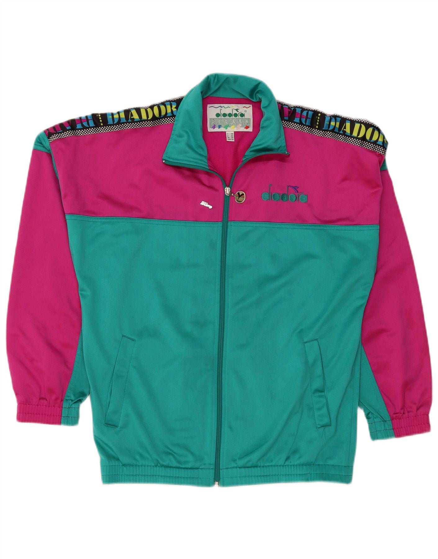 DIADORA Mens Graphic Tracksuit Top Jacket UK 38 Medium Green Colourblock