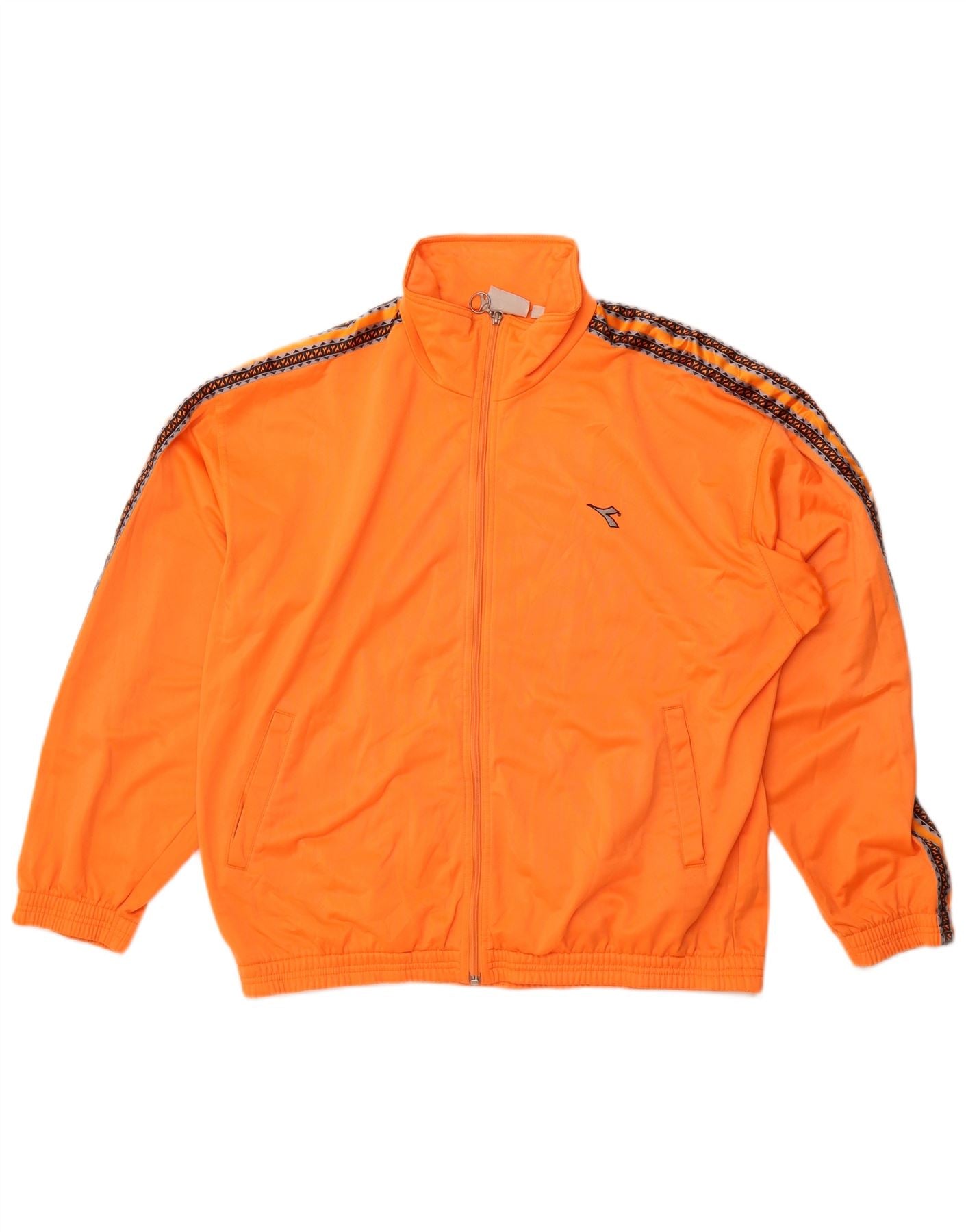 Diadora Mens Graphic Tracksuit Top Jacket UK 40 Medium Orange Polyester