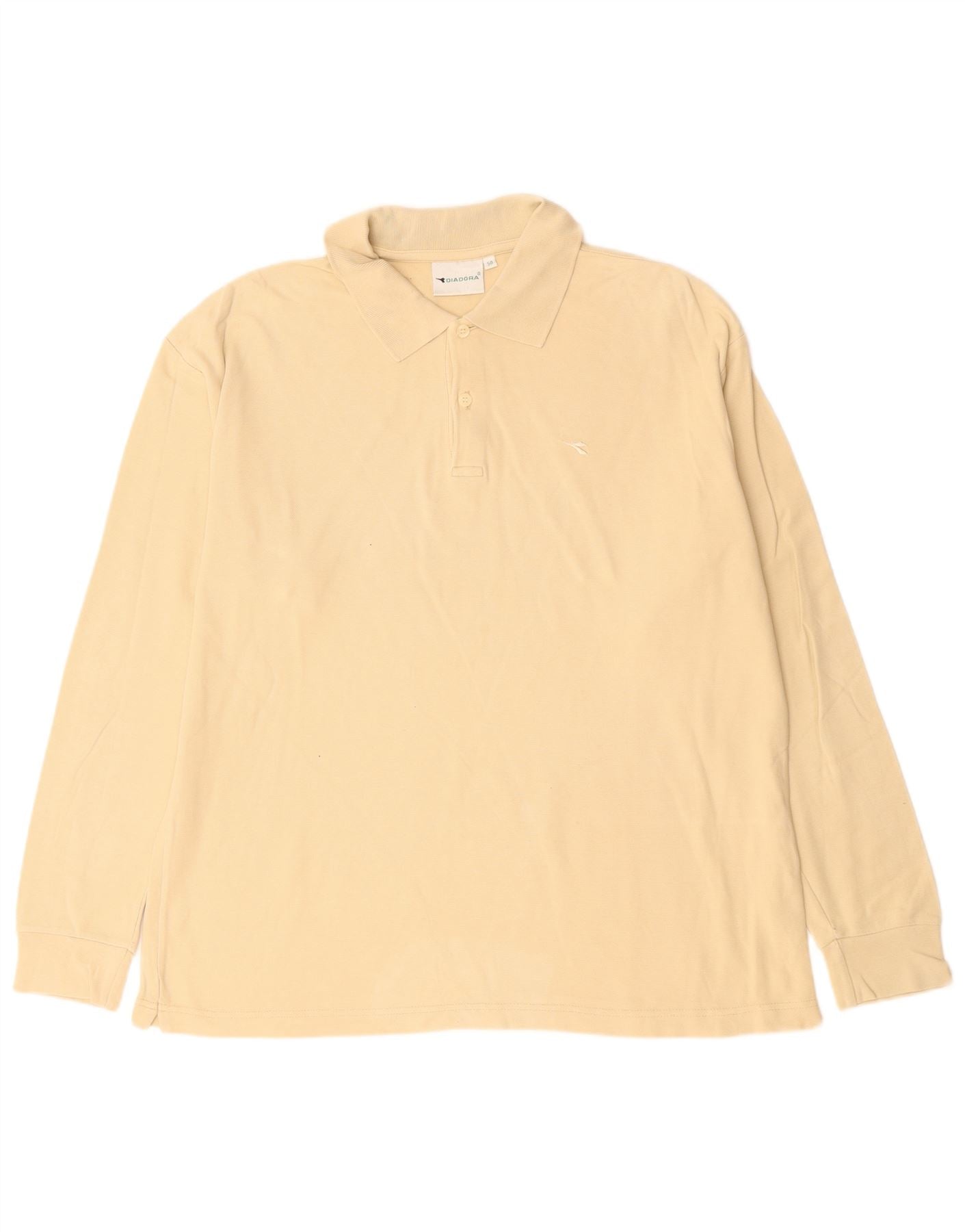 DIADORA Mens Long Sleeve Polo Shirt IT 50 Medium Beige Cotton