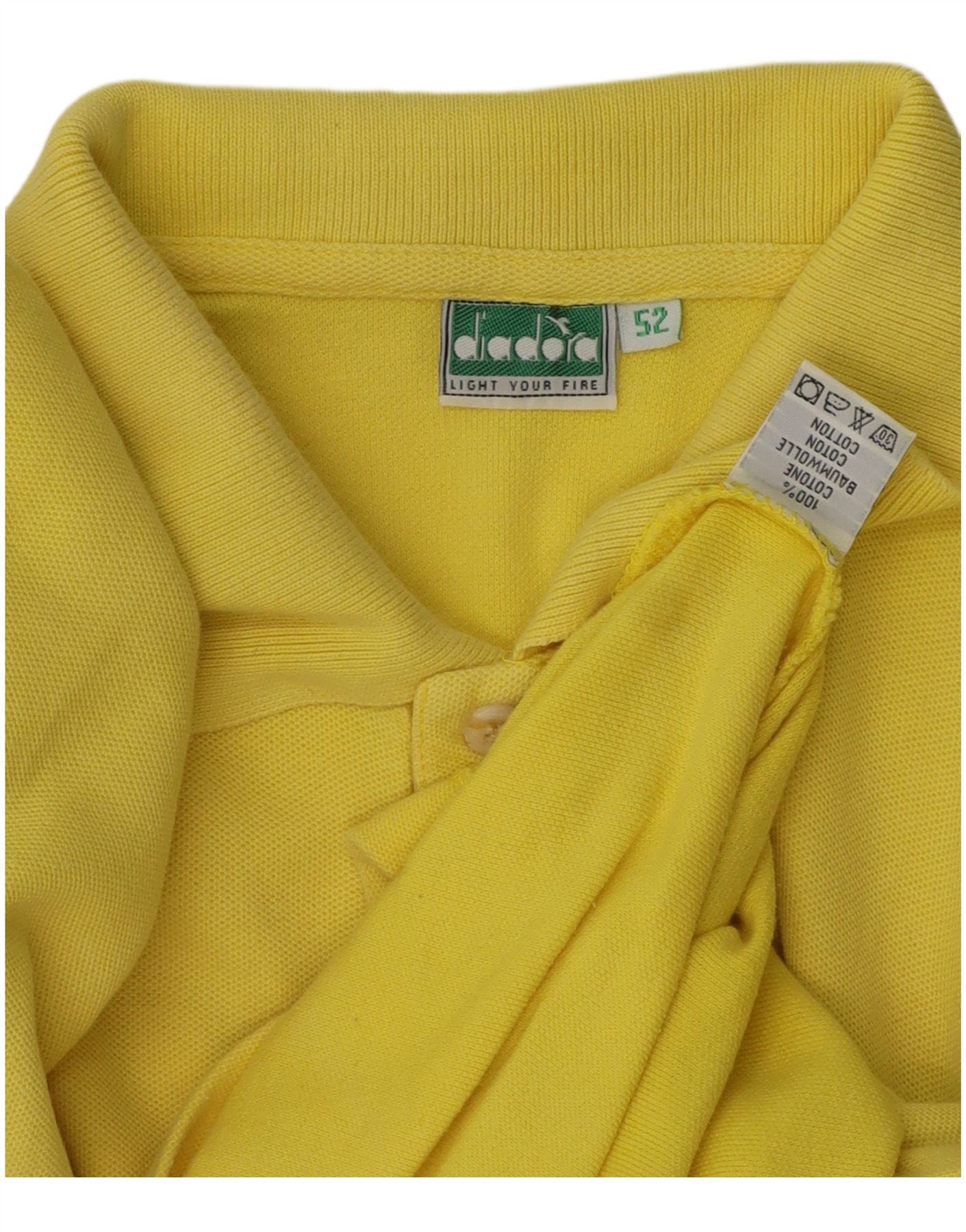DIADORA Mens Polo Shirt IT 52 Large Yellow Cotton