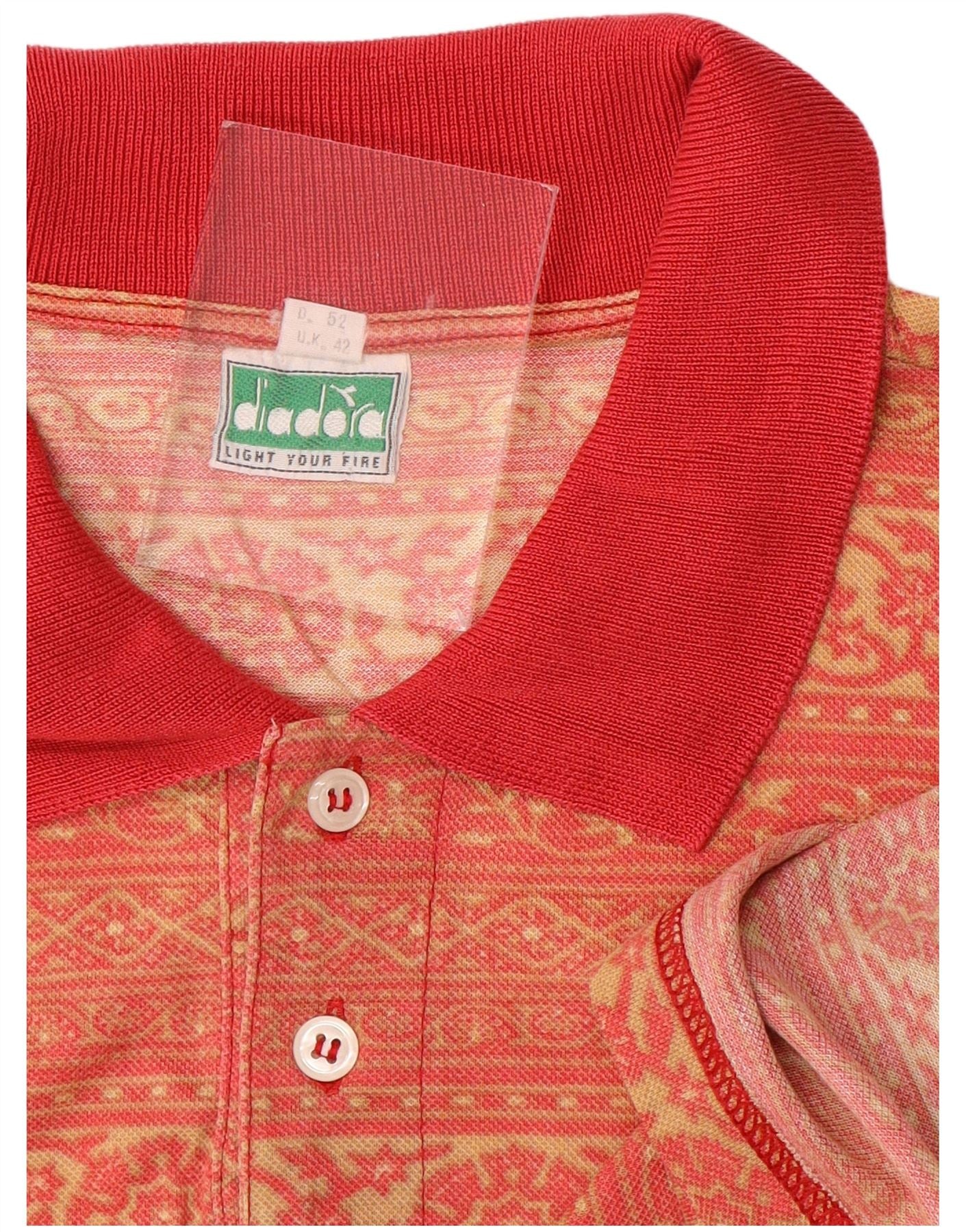DIADORA Mens Polo Shirt UK 42 Large Red Paisley