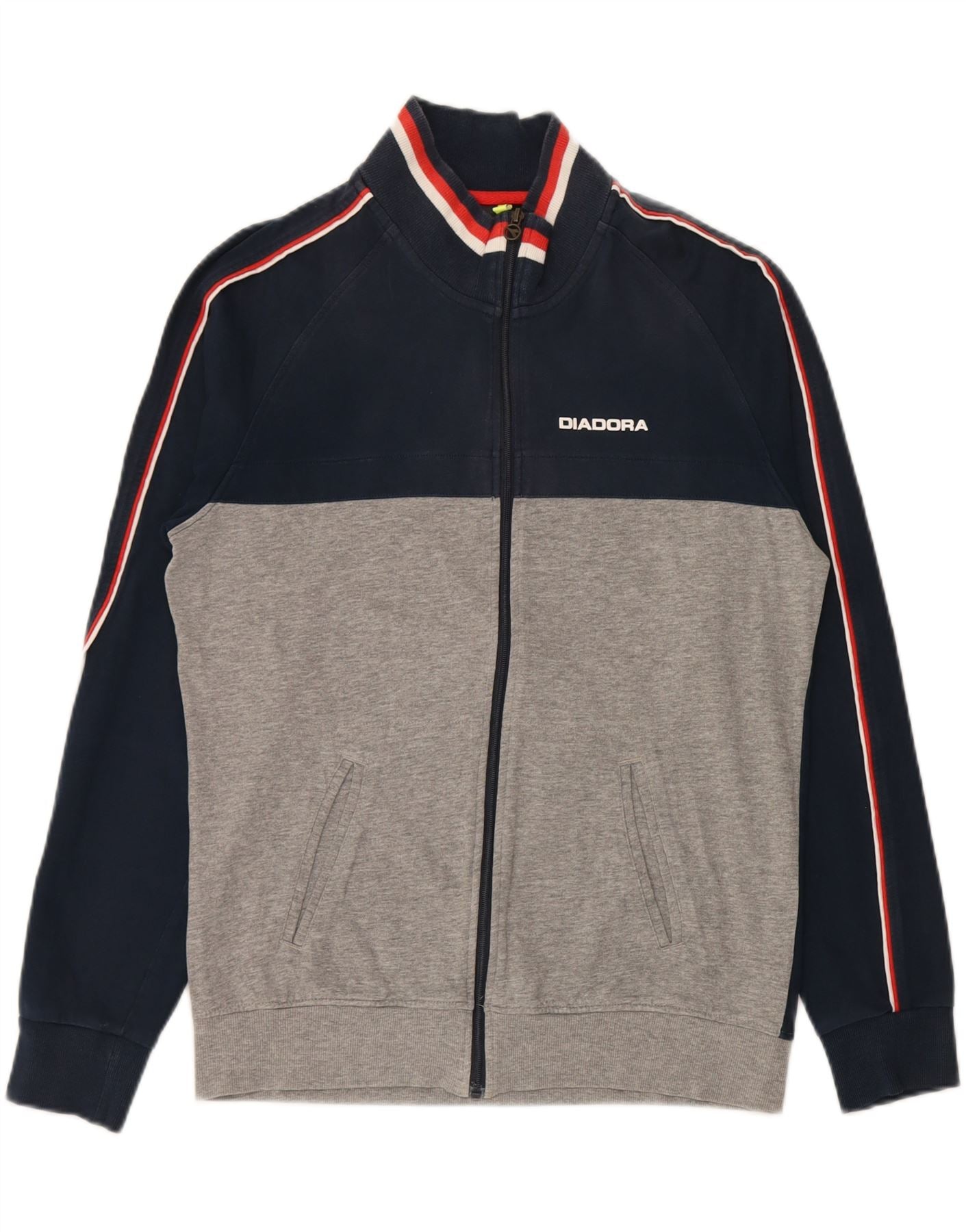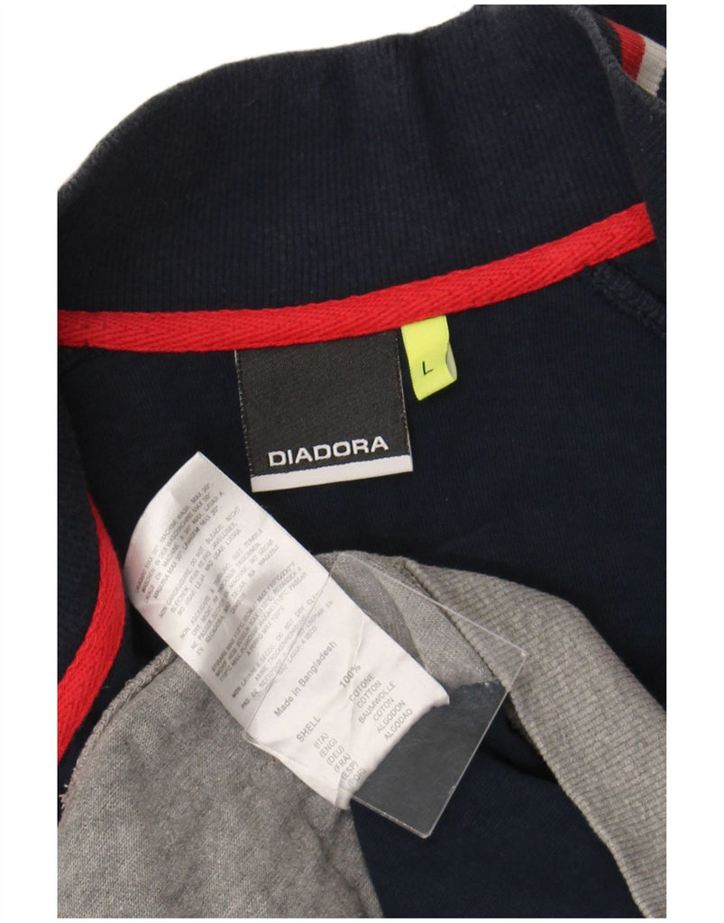 DIADORA Mens Tracksuit Top Jacket Large Navy Blue Colourblock Cotton