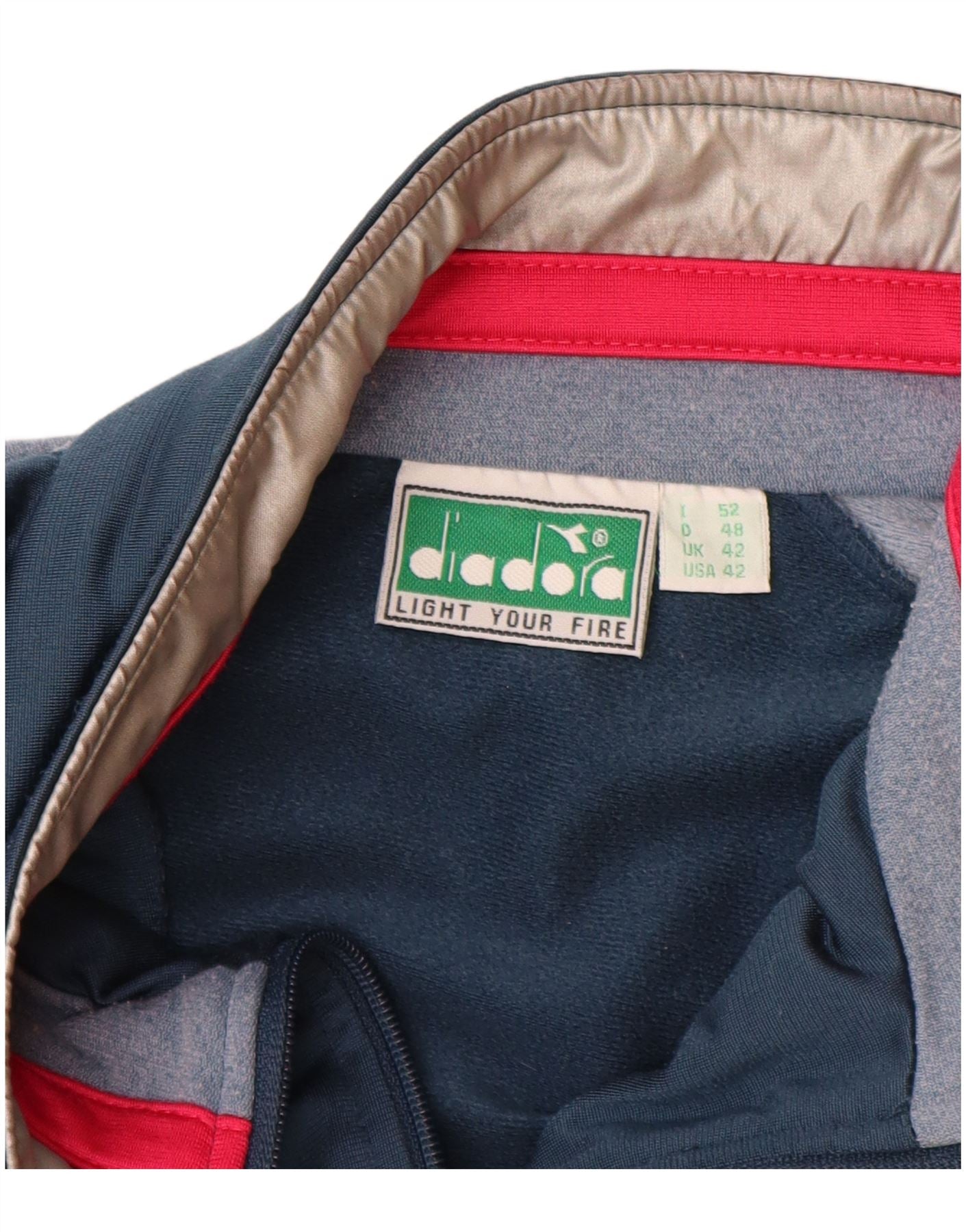 DIADORA Mens Tracksuit Top Jacket UK 42 Large Navy Blue Colourblock