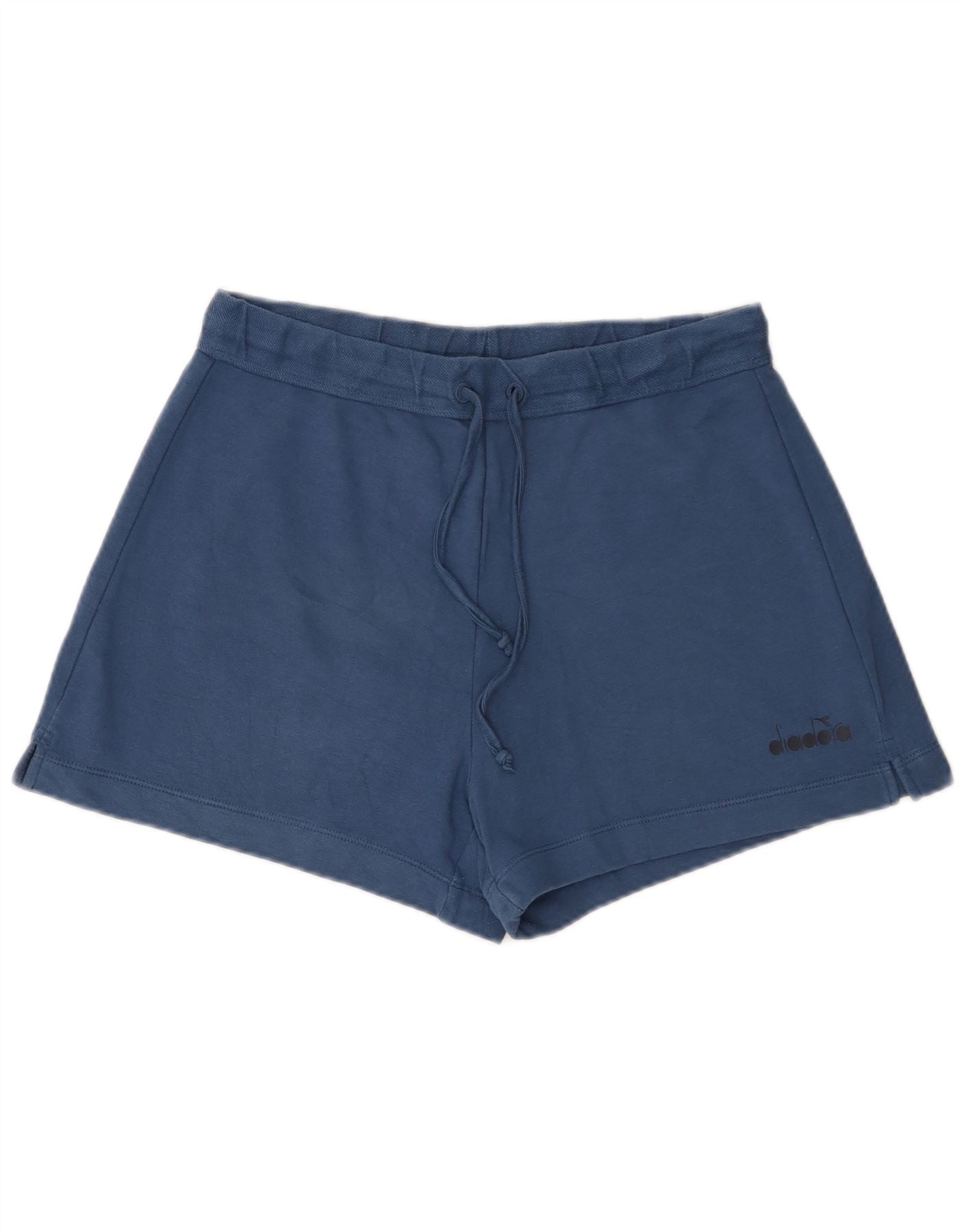 DIADORA Womens High Waist Sport Shorts UK 14 Large Blue Cotton