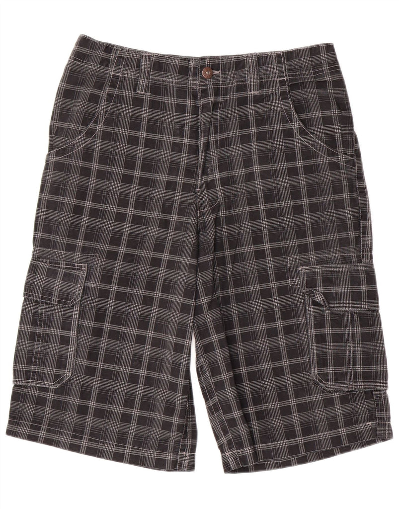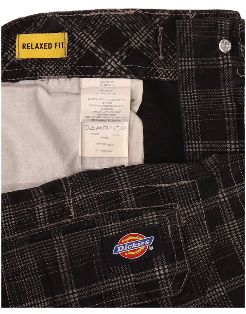 DICKIES Mens Relaxed Fit Cargo Shorts W30 Medium Black Plaid Cotton