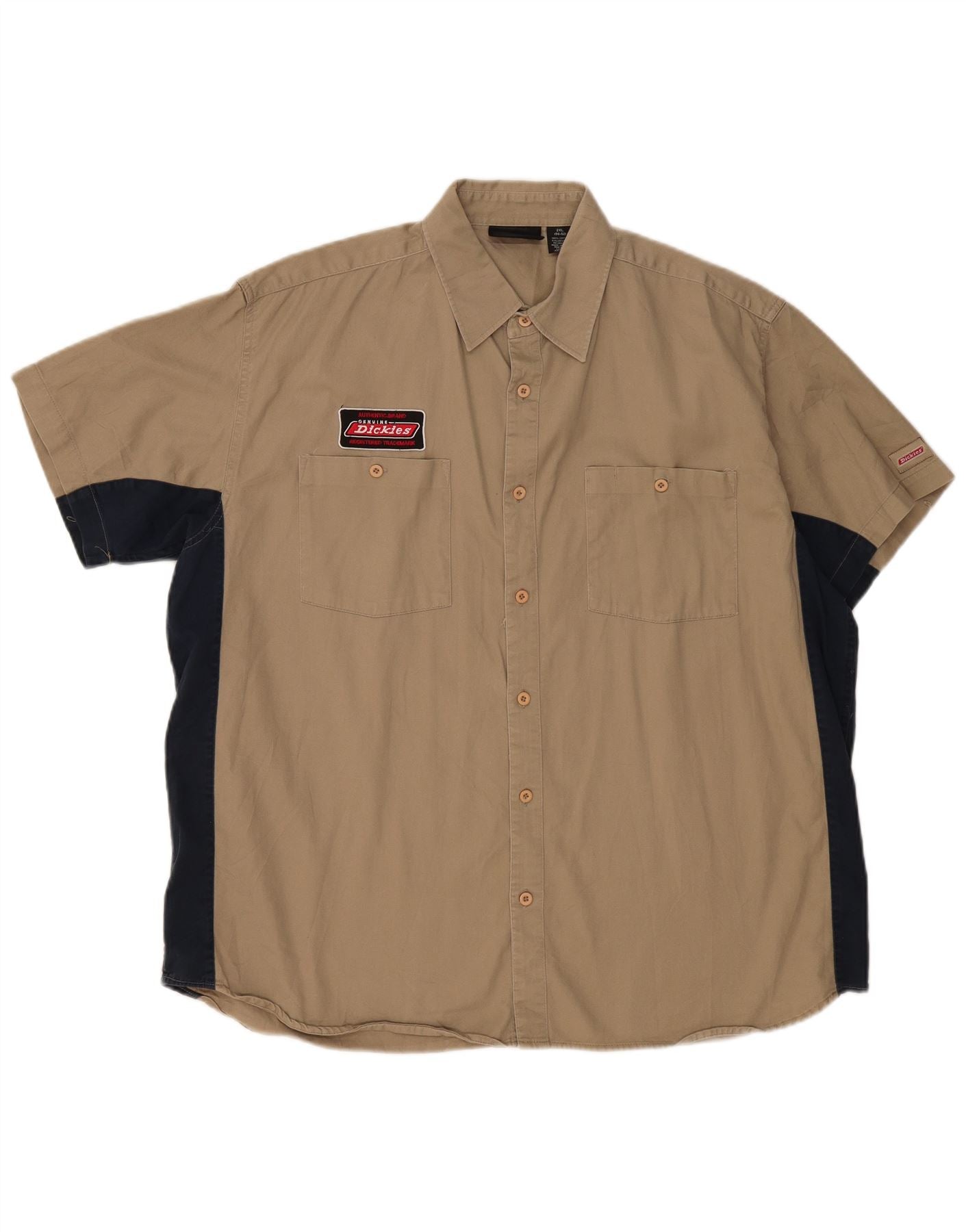 DICKIES Mens Short Sleeve Shirt 2XL Beige Colourblock Cotton