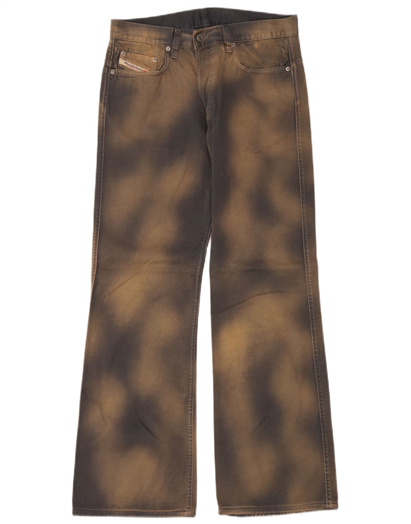 DIESEL Mens Bootcut Casual Trousers W32 L32 Beige Tie Dye Cotton