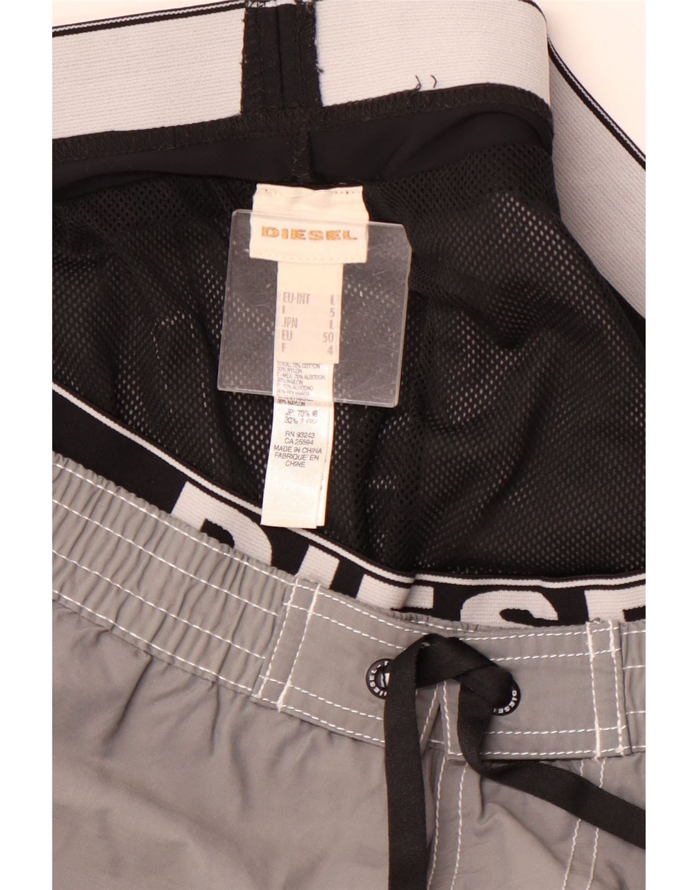 DIESEL Mens Graphic Swimming Shorts Large Grey Cotton