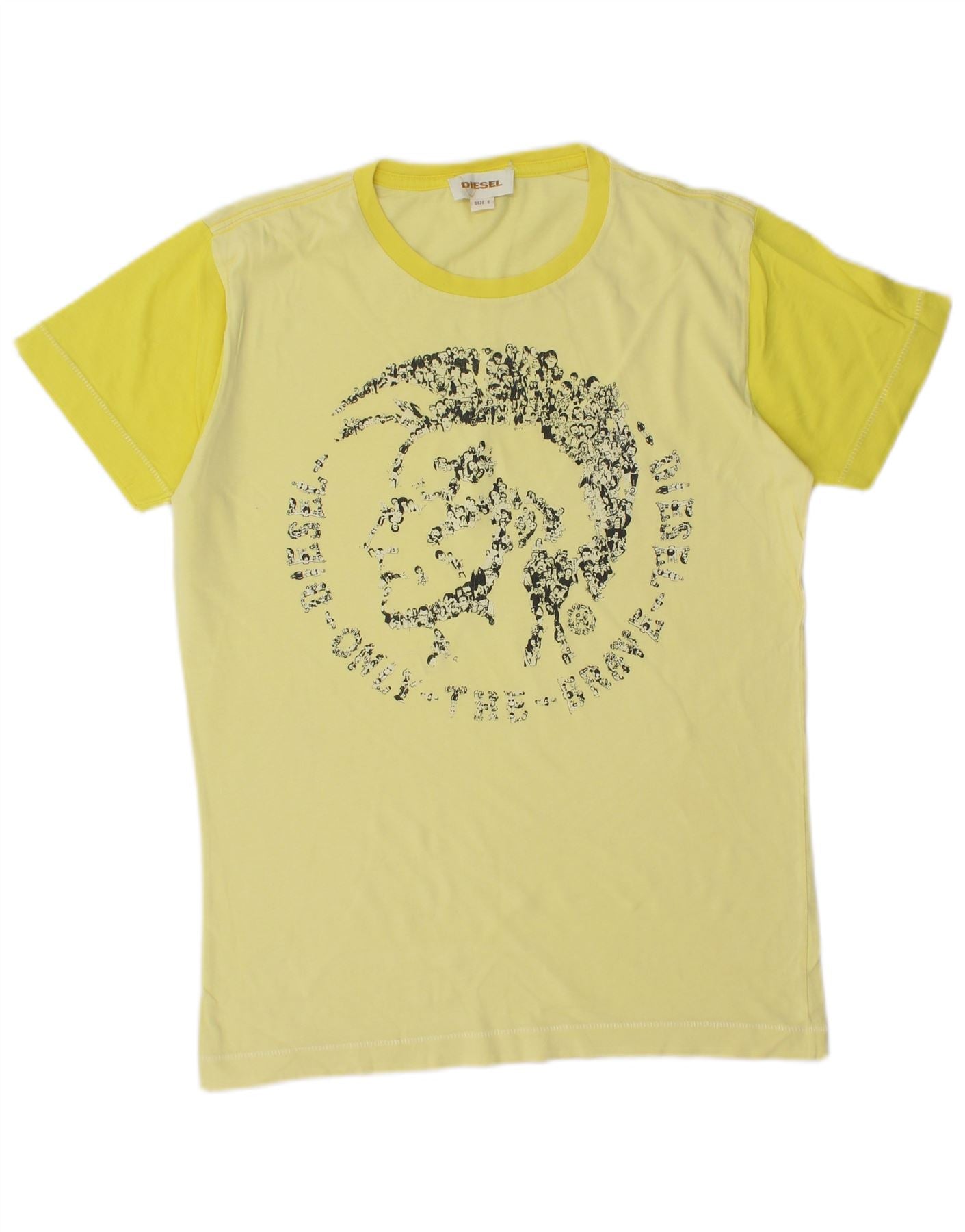 DIESEL Mens Graphic T-Shirt Top Small Yellow Colourblock