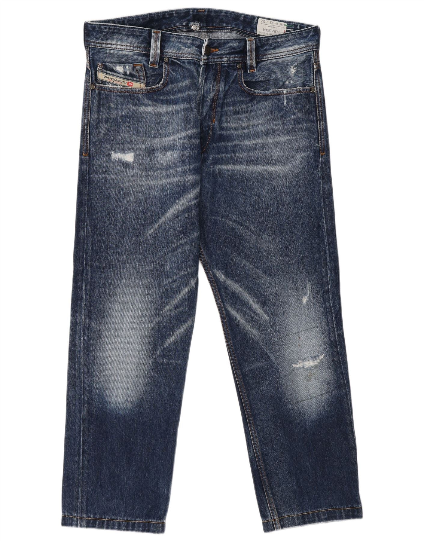 DIESEL Mens Heeven Distressed Straight Jeans W32 L27 Blue Cotton