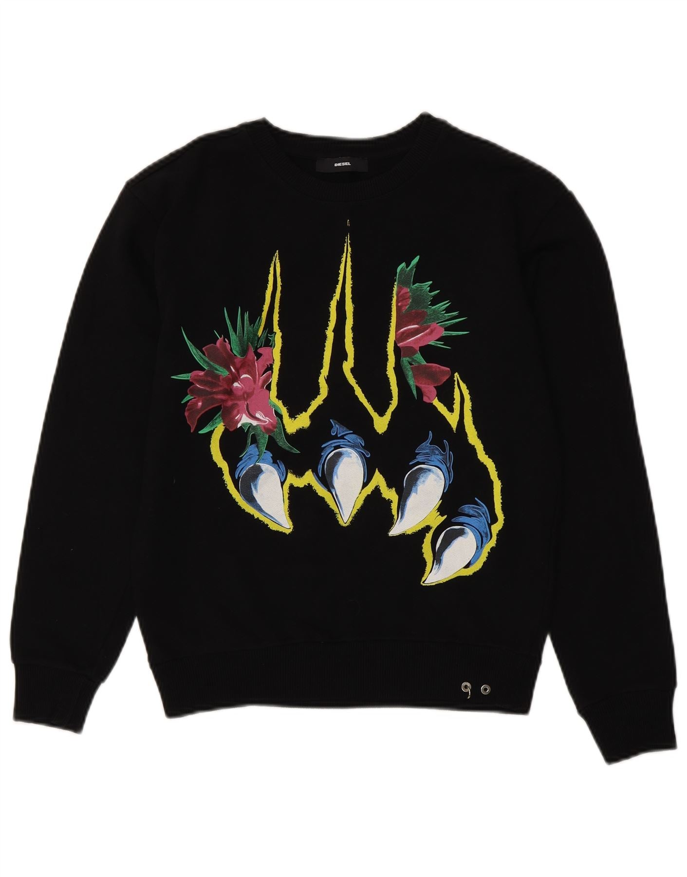 DIESEL Womens Graphic Sweatshirt Jumper UK 10 Small Black Cotton