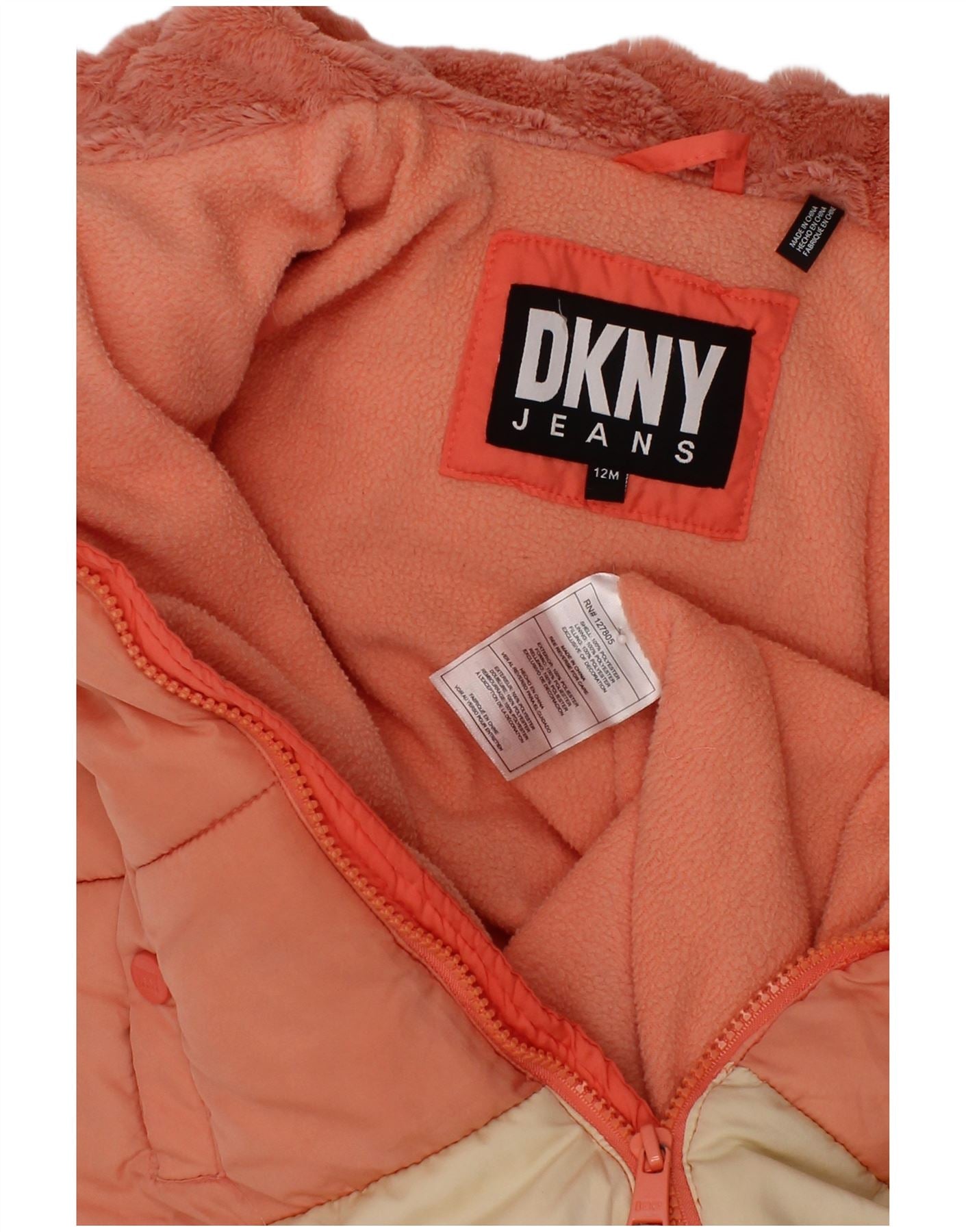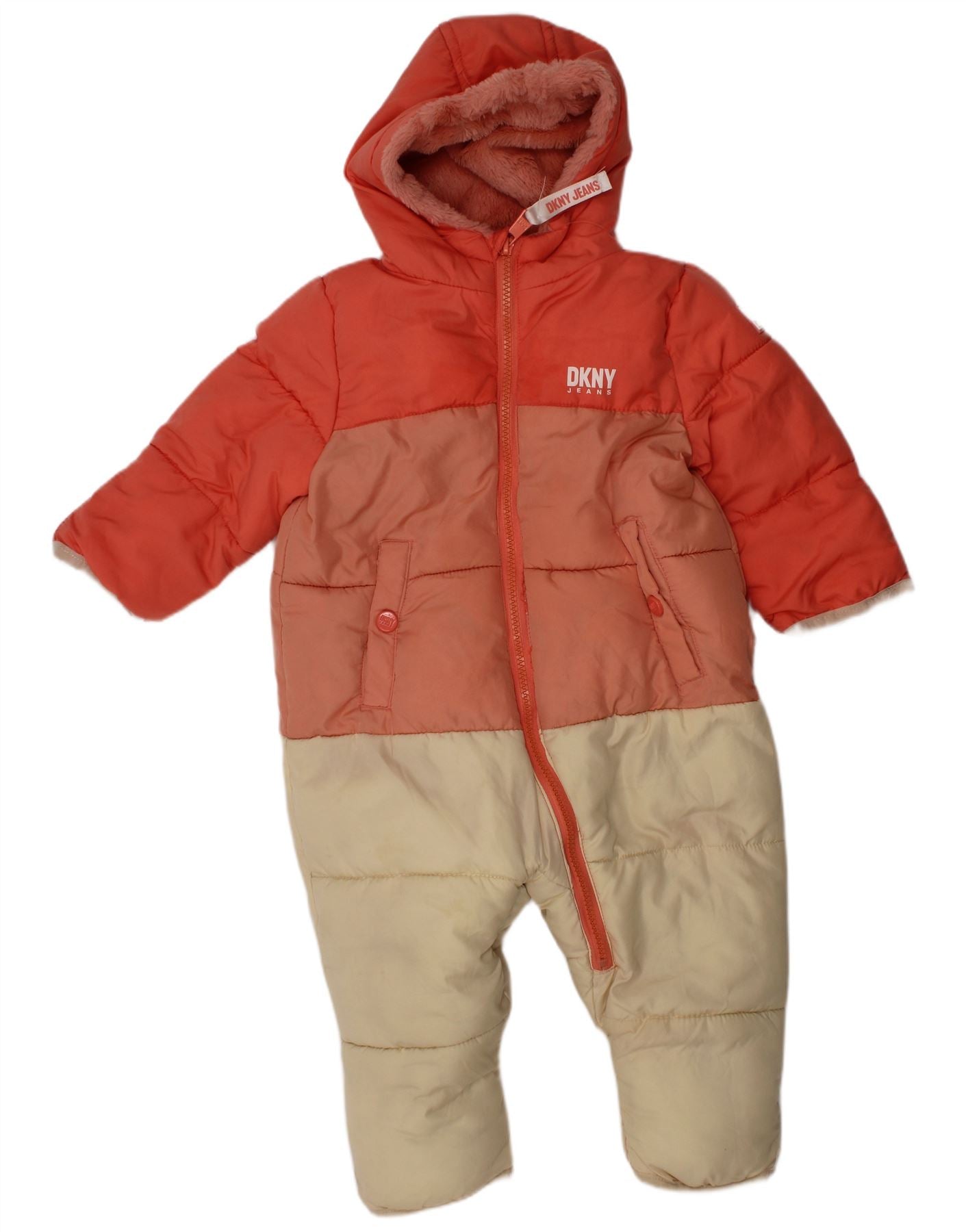 DKNY Baby Girls Hooded Jumpsuit 9-12 Months Orange Colourblock Winter