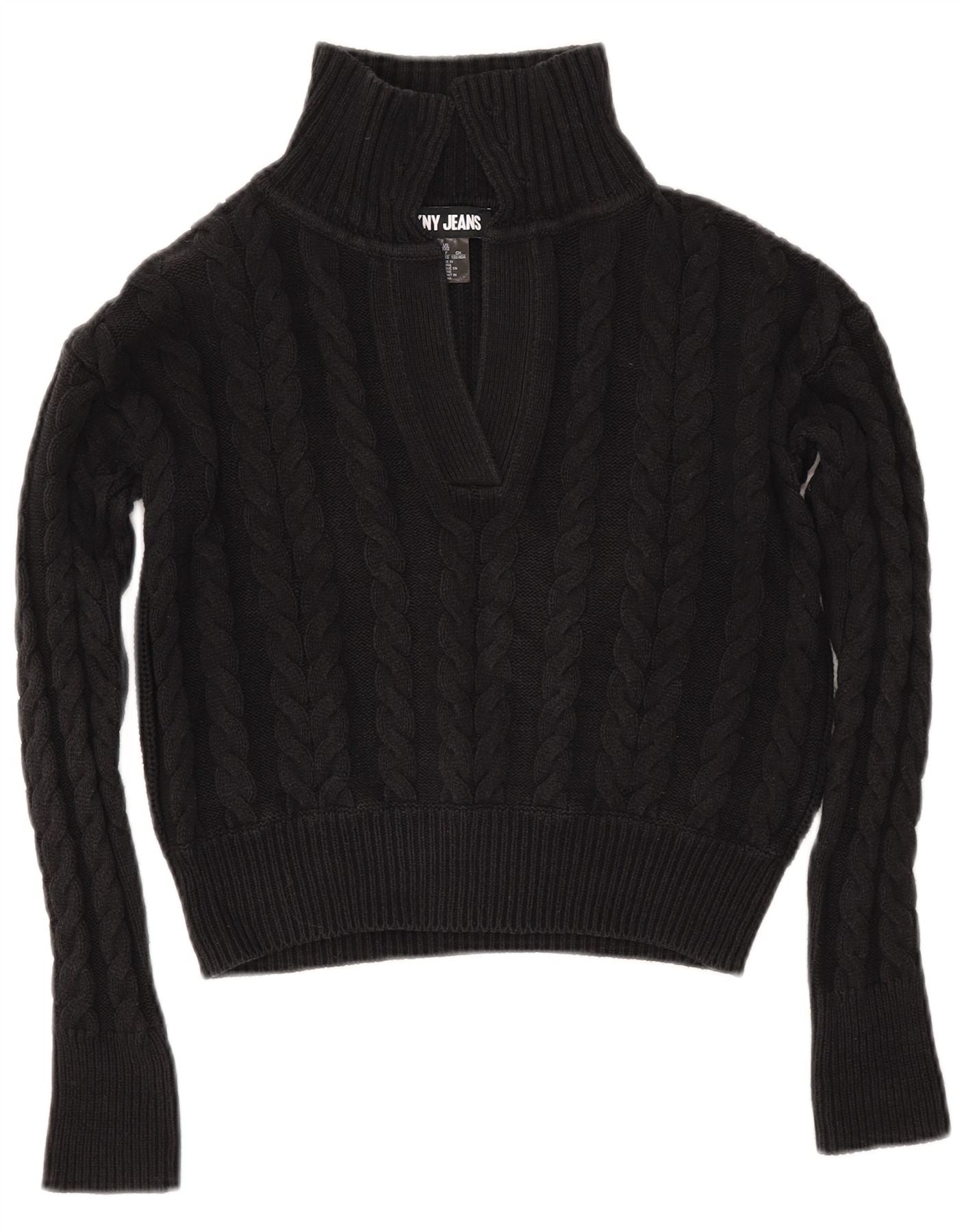 DKNY Womens Crop Overshirt Polo Neck Jumper Sweater UK 2 2XS Black Cotton