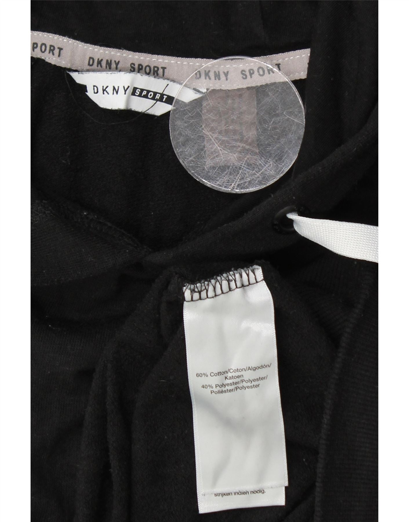DKNY Womens Hoodie Jumper UK 14 Medium Black Cotton