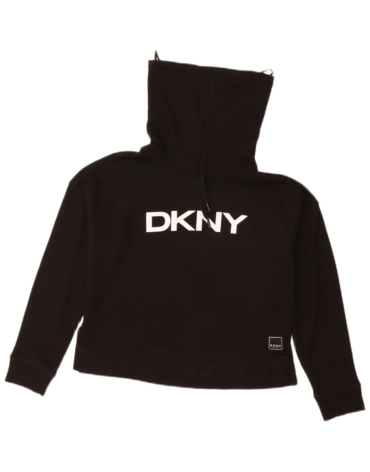 DKNY Womens Oversized Crop Graphic Sweatshirt Jumper UK 6 XS Black Cotton