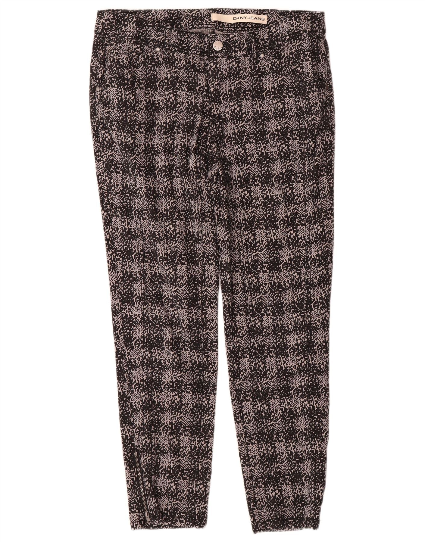 DKNY Womens Slim Casual Trousers US 6 Medium W32 L26 Black Animal Print