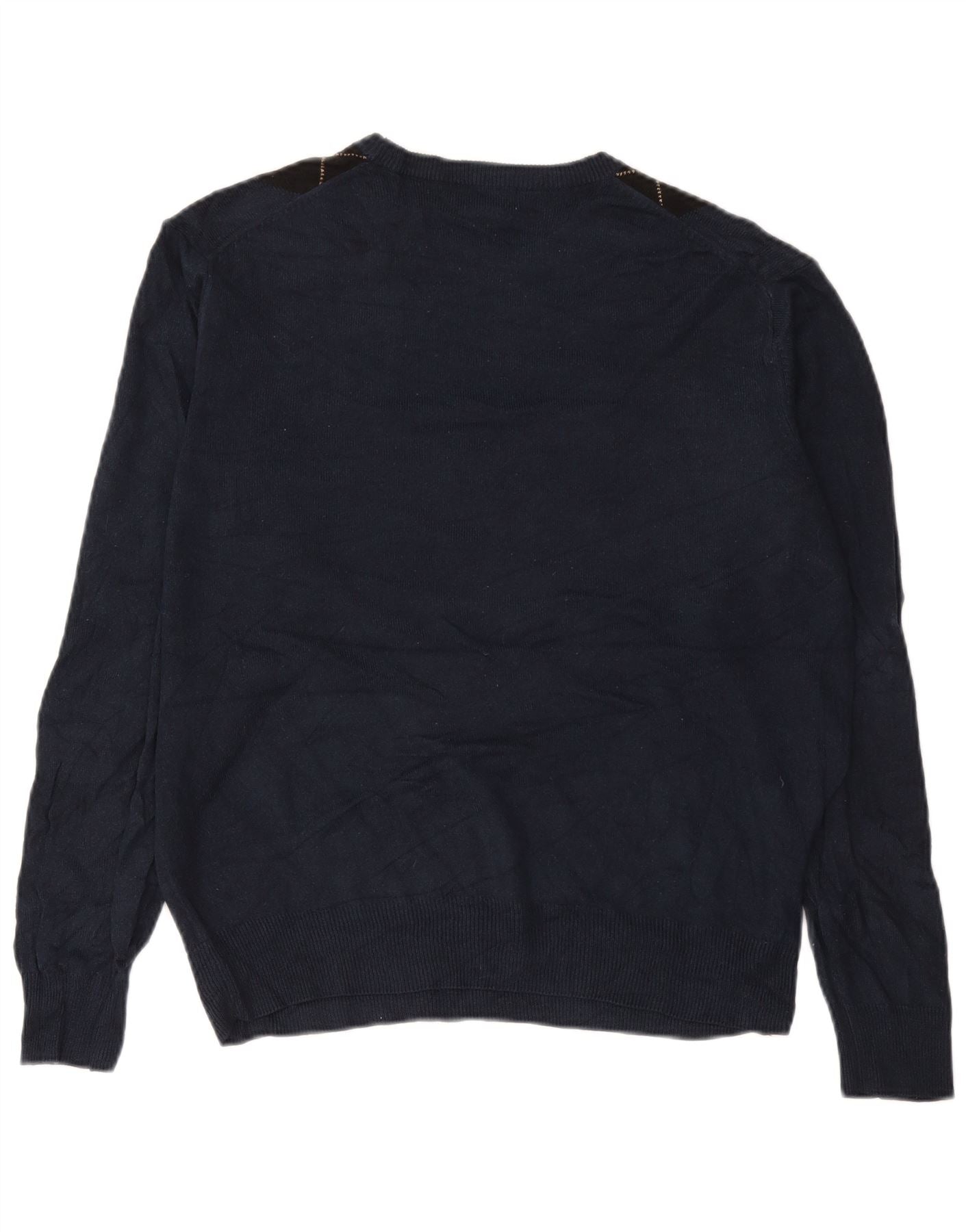 DOCKERS Mens Crew Neck Jumper Sweater Large Navy Blue Argyle/Diamond