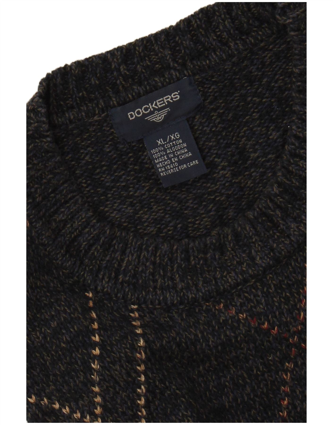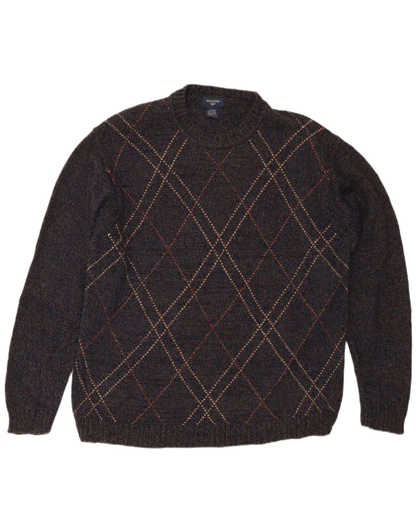 DOCKERS Mens Crew Neck Jumper Sweater XL Navy Blue Argyle/Diamond Cotton