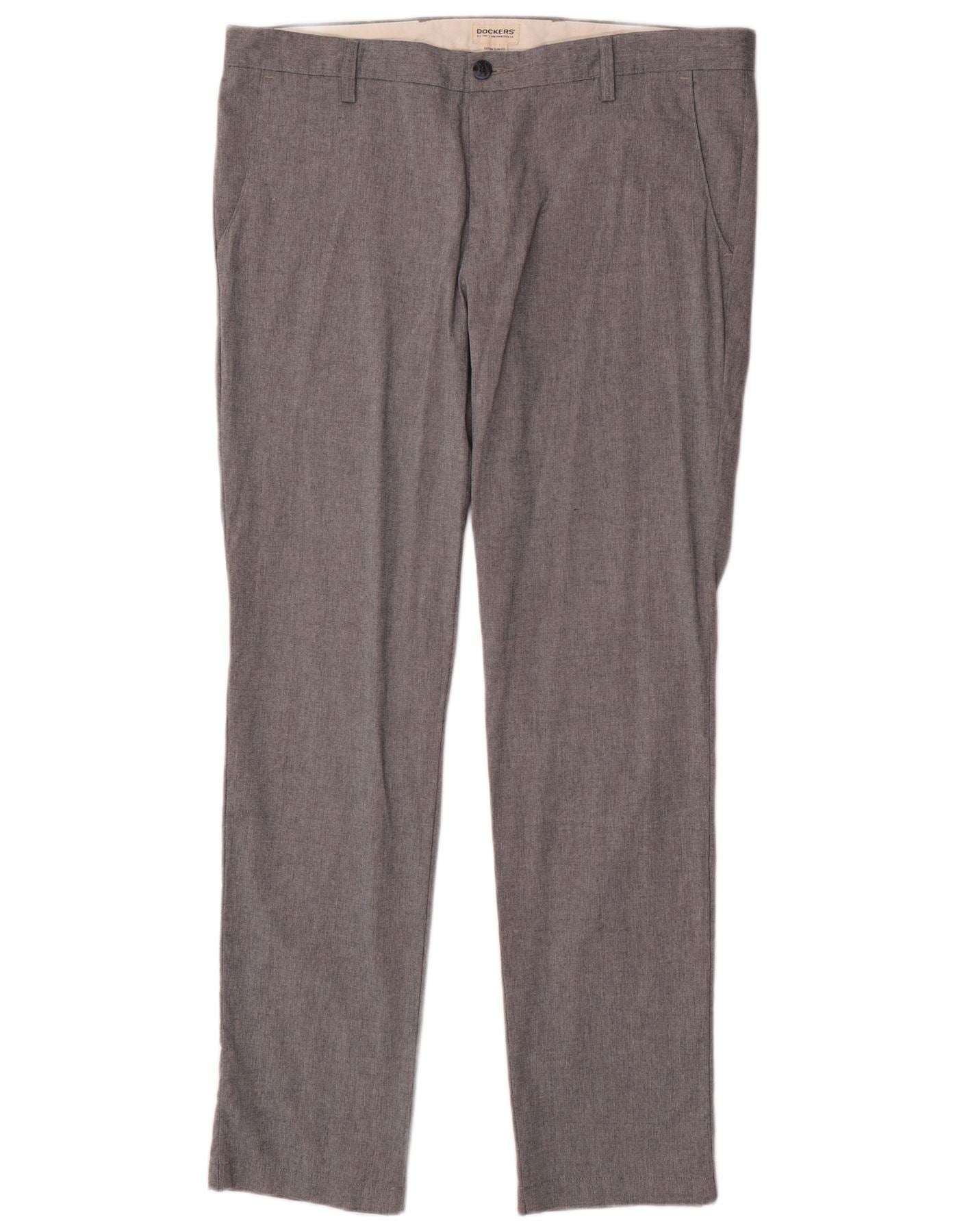 Dockers Mens Extra Slim Fit Chino Trousers W38 L34 Grey Cotton