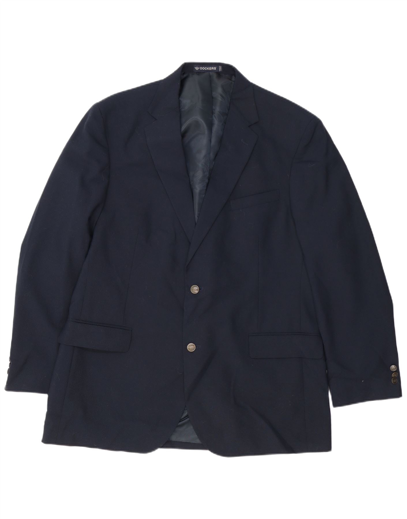 Dockers Mens Longline 2 Button Blazer Jacket UK 44 2XL Navy Blue Wool
