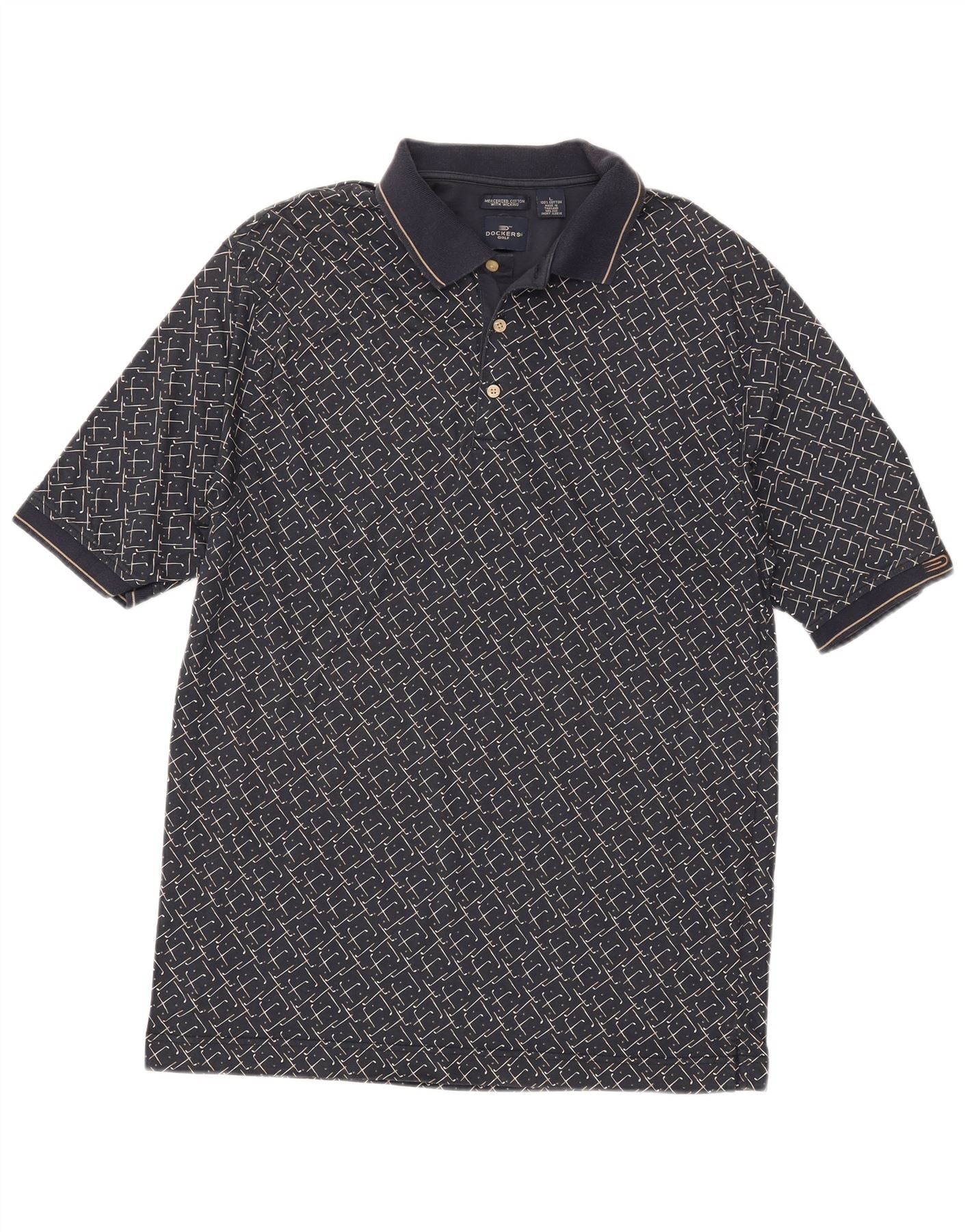 DOCKERS Mens Polo Shirt Large Navy Blue Geometric Cotton