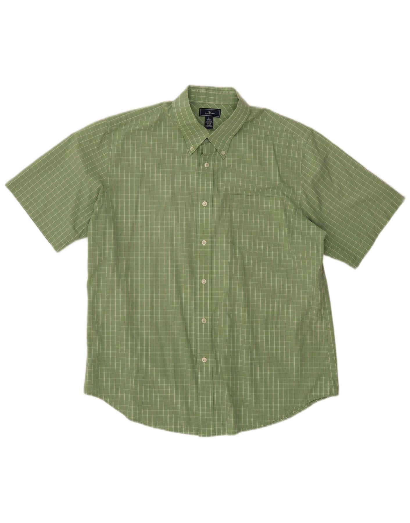 DOCKERS Mens Short Sleeve Shirt Size 16 1/2 Large Green Check Cotton