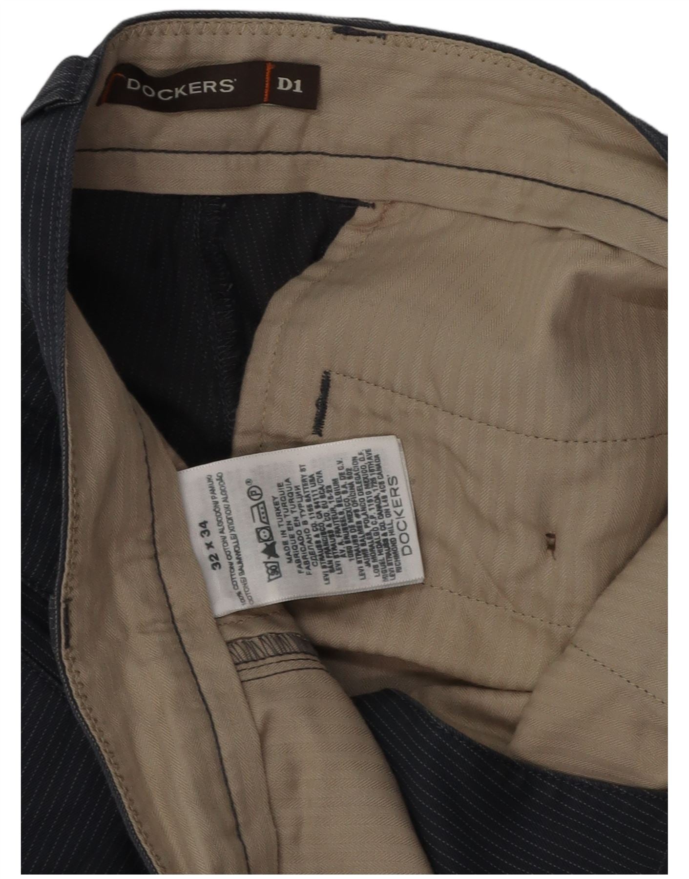 DOCKERS Mens Straight Chino Trousers W32 L29 Navy Blue Pinstripe Cotton