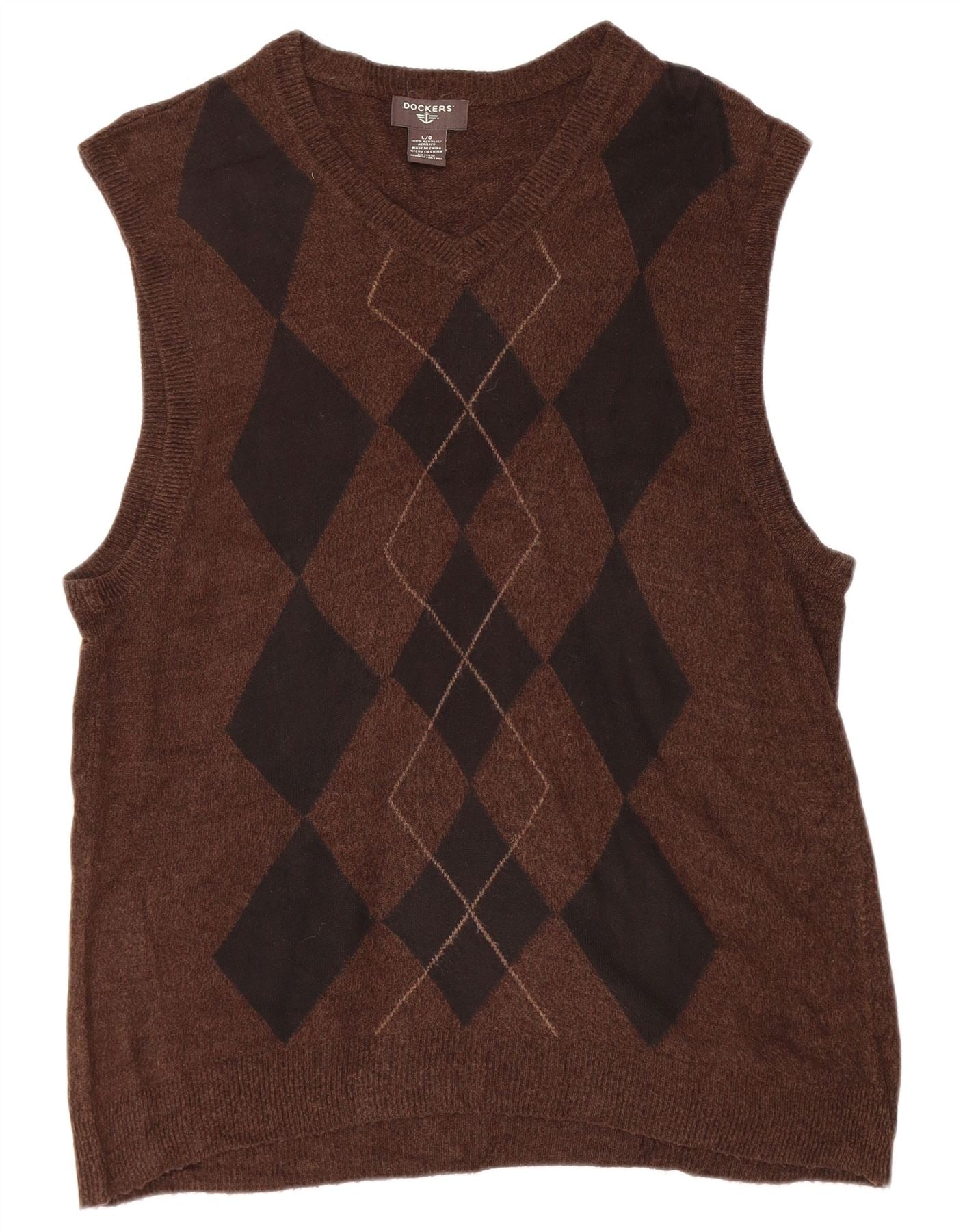 DOCKERS Mens Vest Tank Top Large Brown Argyle/Diamond Acrylic