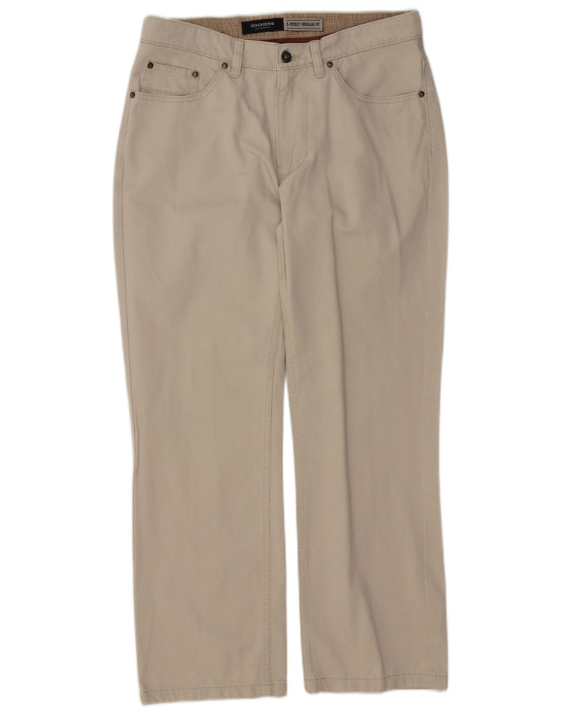 DOCKERS Womens Regular Fit Straight Casual Trousers W32 L28 Beige Cotton