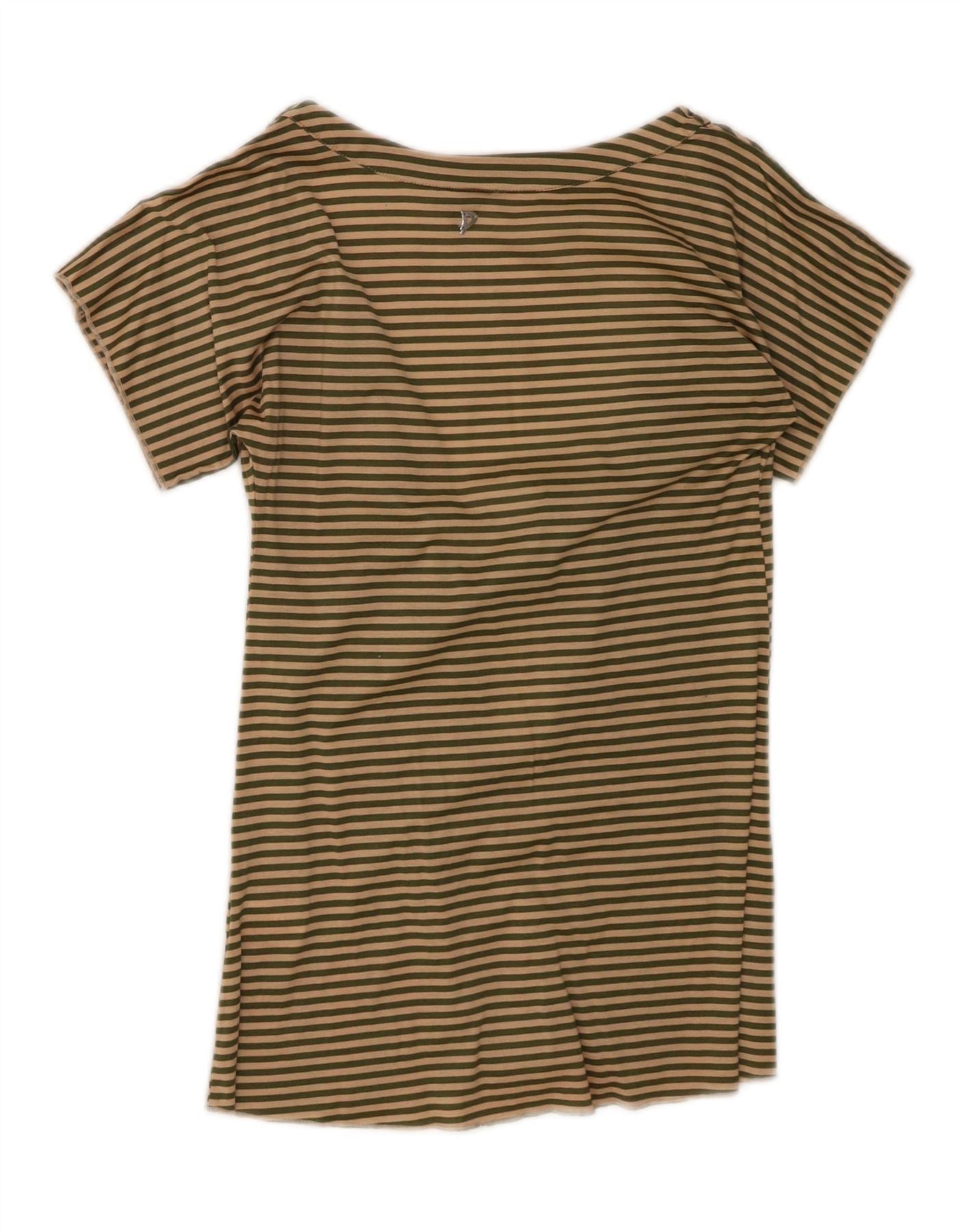 Dondup Womens Front Tie Blouse Top UK 10 Small Beige Striped Cotton