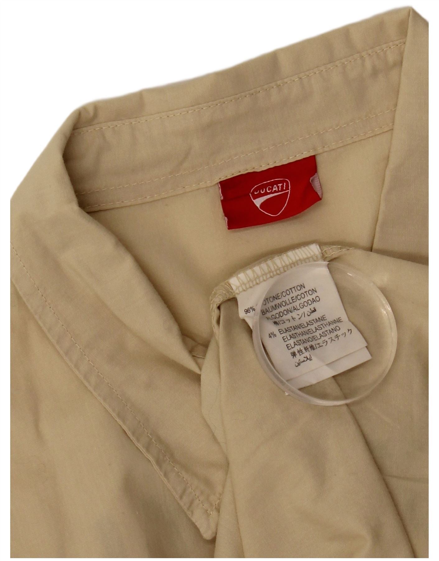 DUCATI Mens Graphic Short Sleeve Shirt Large Beige Cotton
