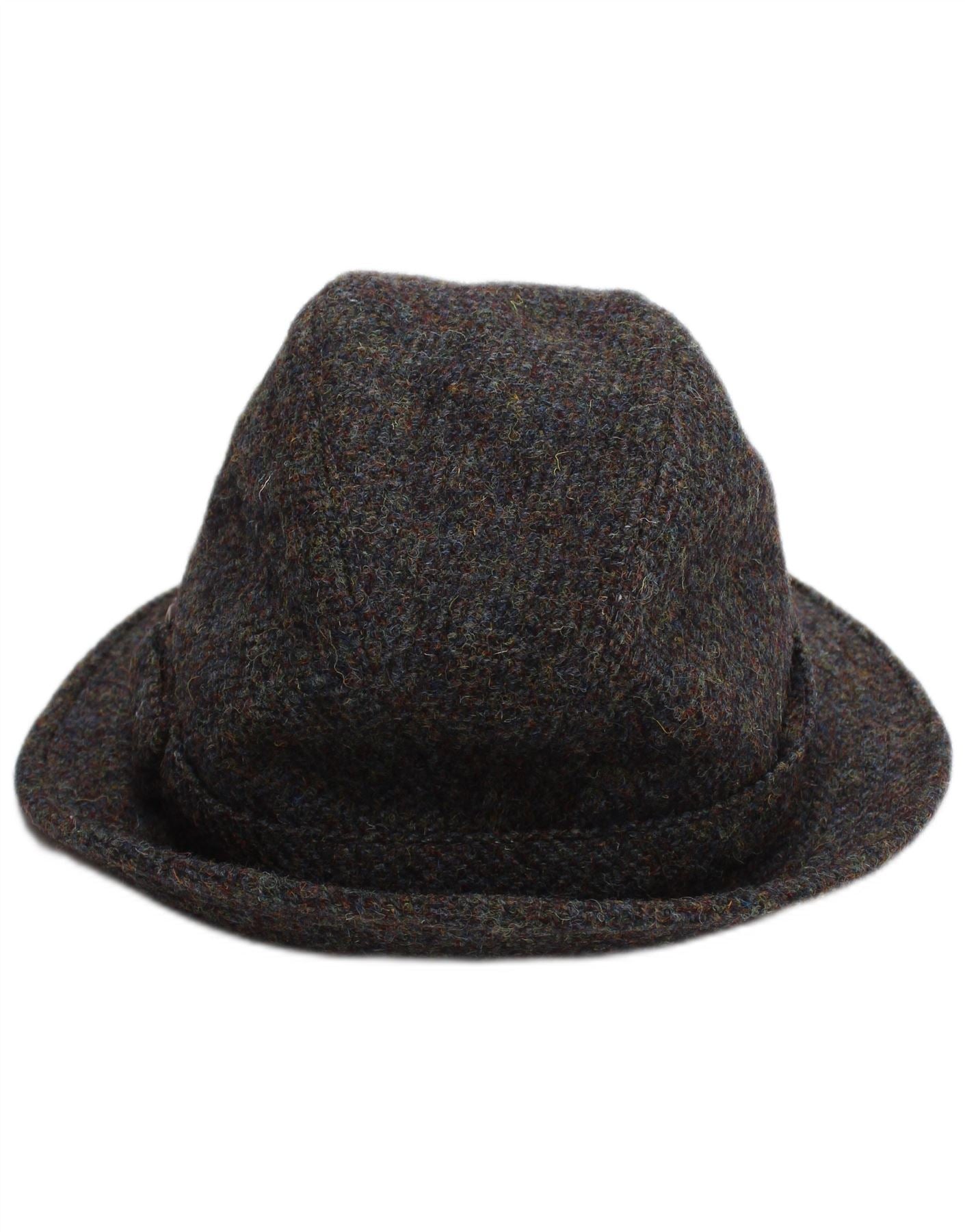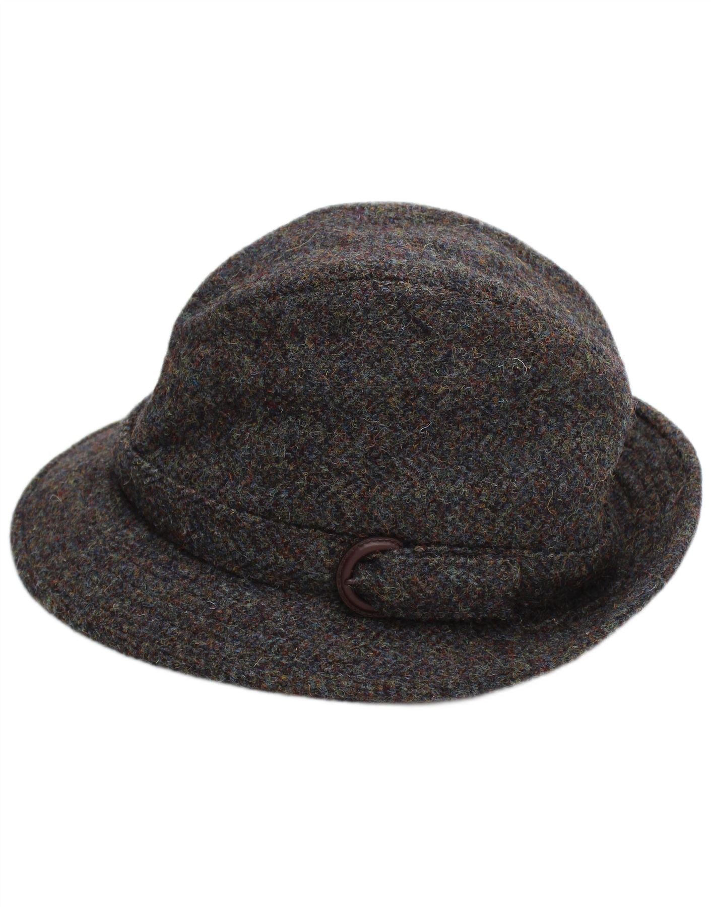 - AI Description: This Dunn &Co mens Fedora Hat is crafted from luxurious Pure New Wool, featuring a distinctive Harris Tweed fabric. Its multicoloured tweed weave blends shades of green, blue, and grey, offering a rich, textured appearance. The classic heritage fit provides a timeless silhouette. A stylish buckle accent adorns the band, adding a refined touch. This hat embodies traditional British craftsmanship.