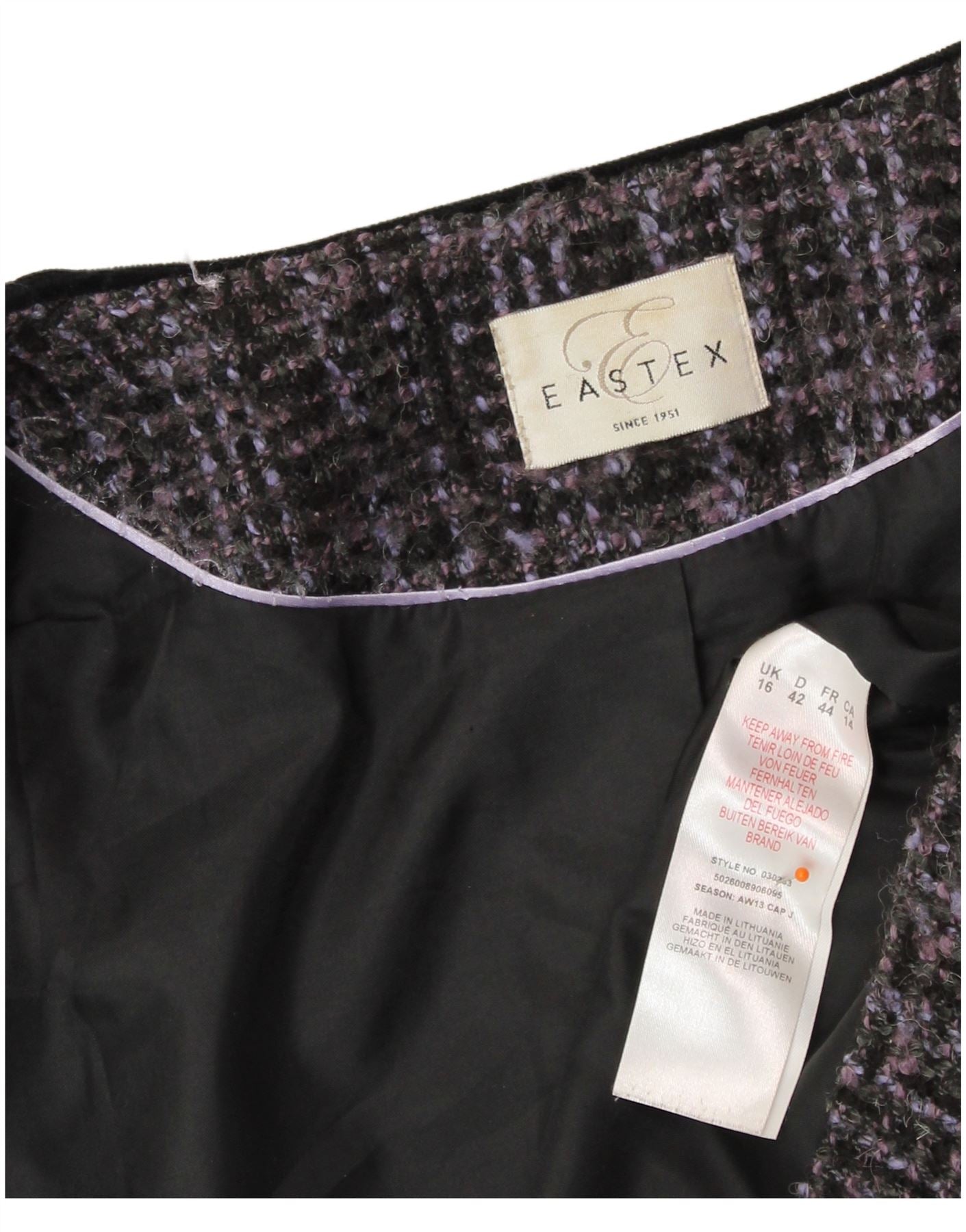 - AI Description: This Eastex womens 2 piece skirt suit is expertly crafted from elegant black tweed, offering a distinctive texture. Both pieces are fully lined for comfort and a smooth silhouette. The long-sleeved top features a classic round neckline and a regular fit. The coordinating skirt also has a regular fit and includes practical pockets. Tonal button accents complete this sophisticated ensemble, perfect for professional settings.
