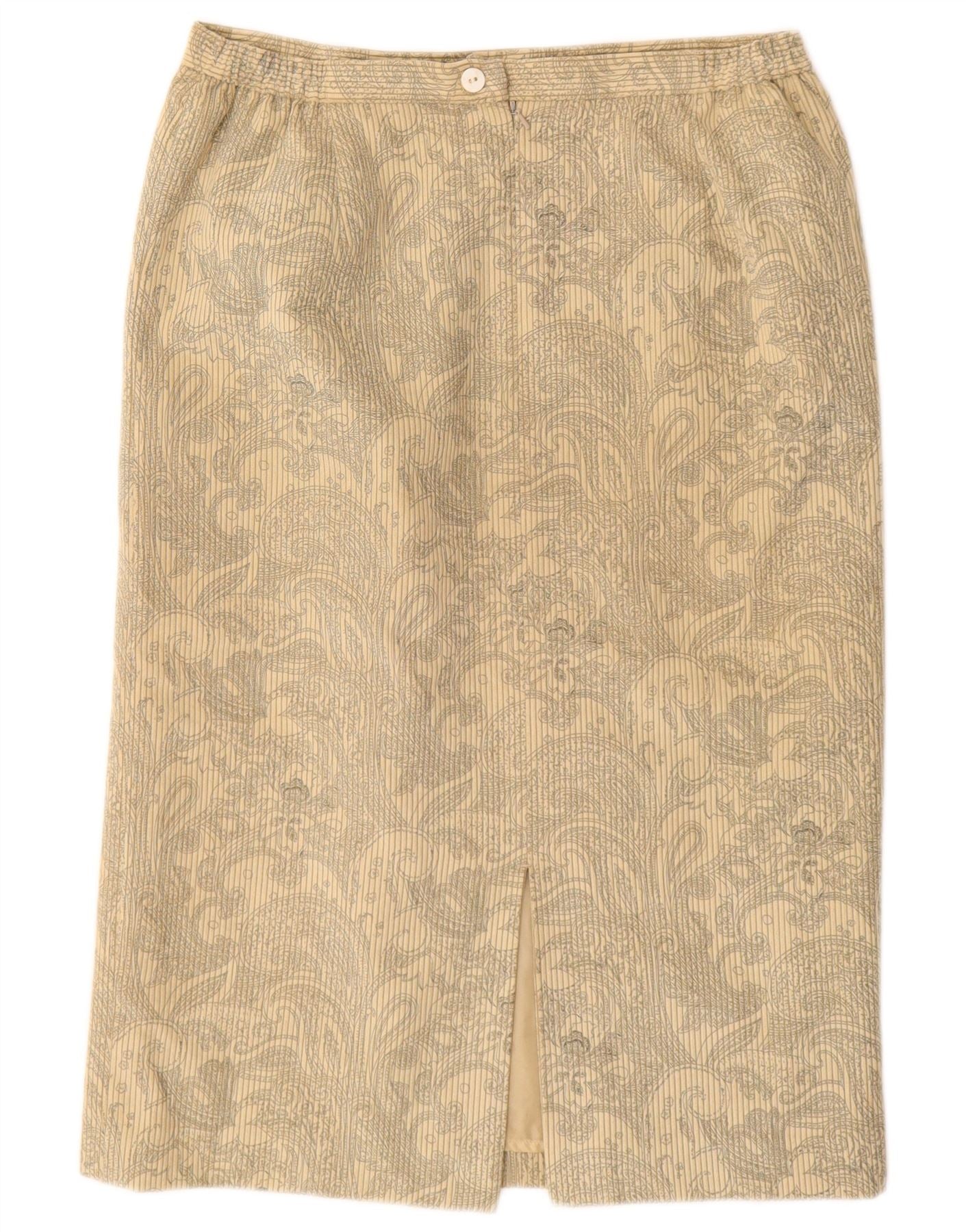 EASTEX Womens Corduroy Straight Skirt UK 14 Medium Beige Floral Polyester