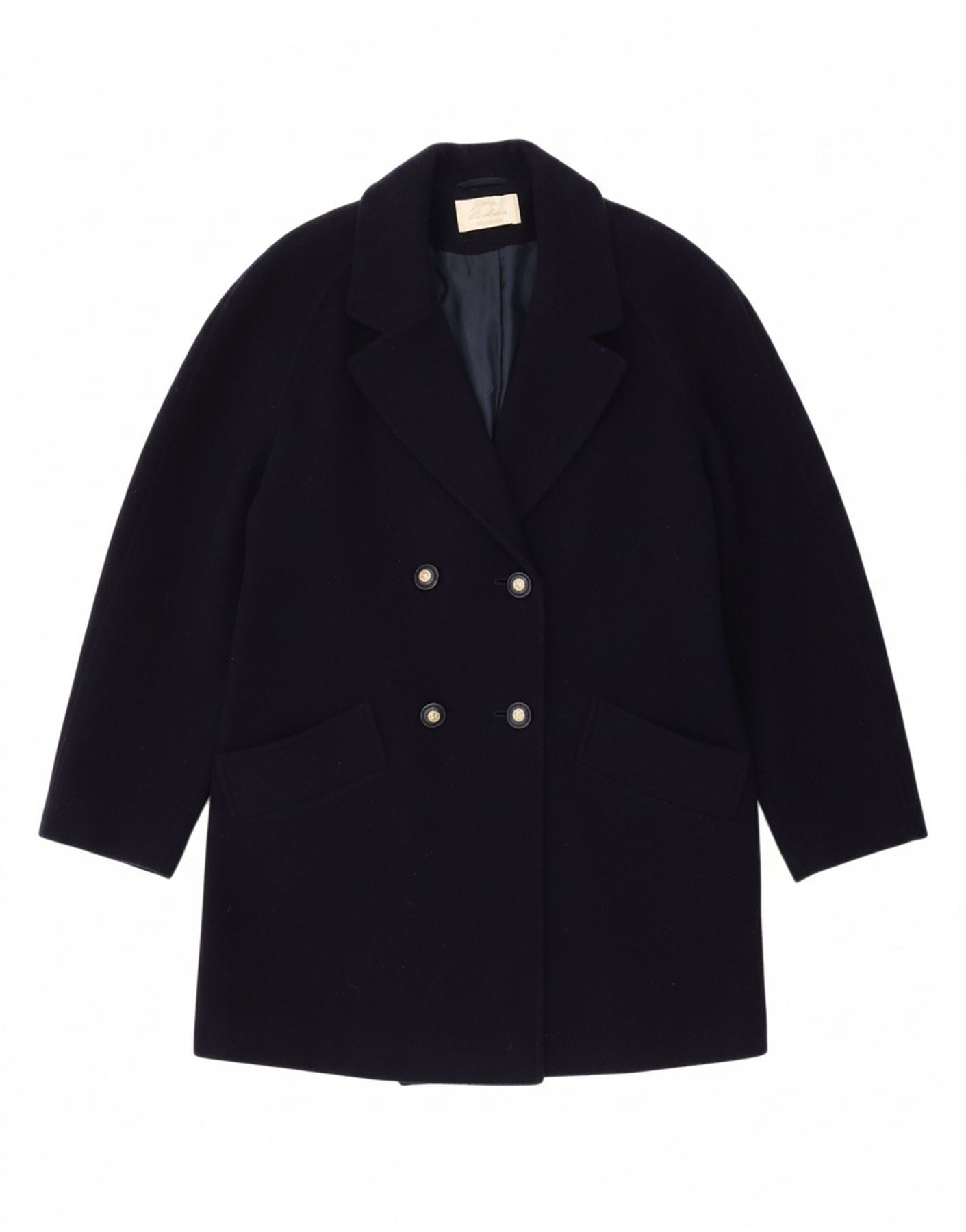 EASTEX Womens Oversized Double Breasted Coat UK 10 Small Navy Blue Wool