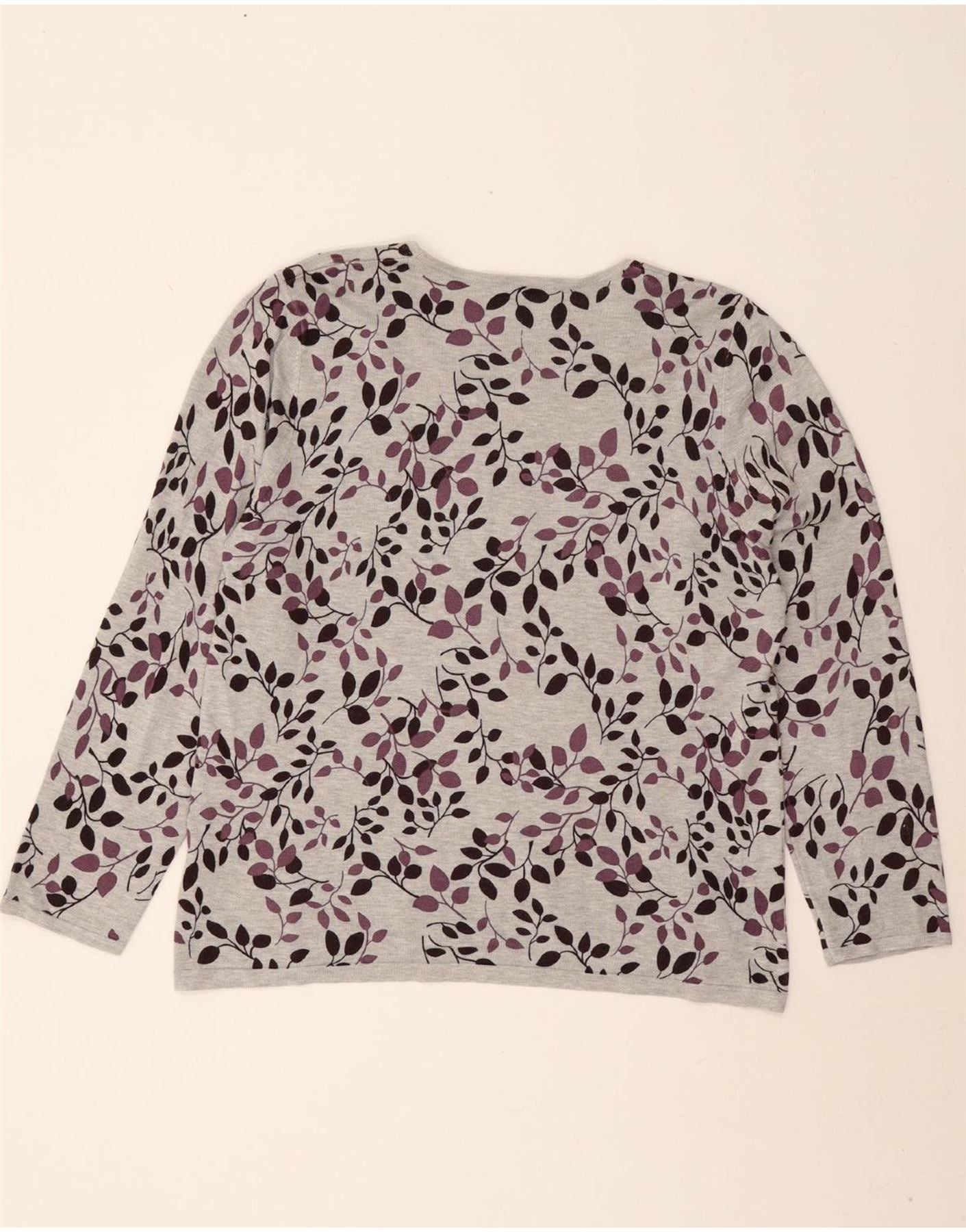 EASTEX Womens Top Long Sleeve UK 18 XL Grey Floral Viscose