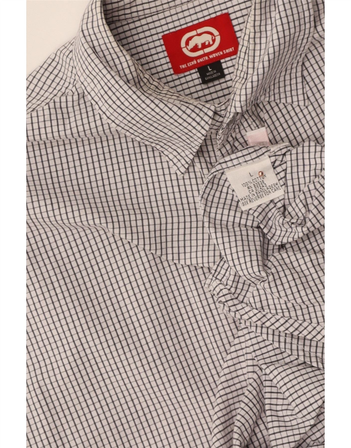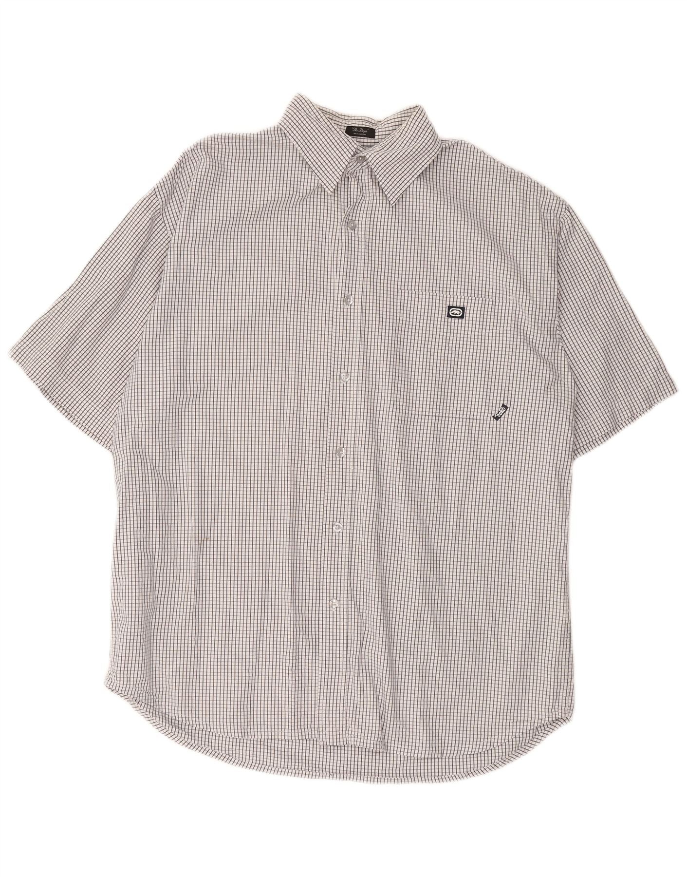 ECKO UNLTD Mens Short Sleeve Shirt Large White Check Cotton