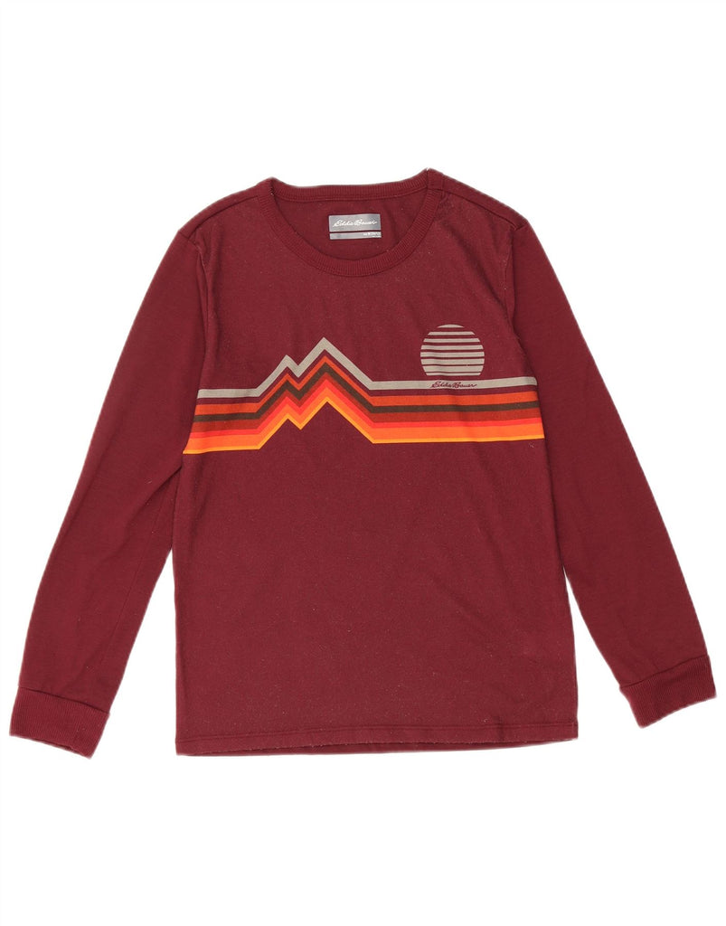 EDDIE BAUER Boys Graphic Top Long Sleeve 10-11 Years Medium Maroon Striped