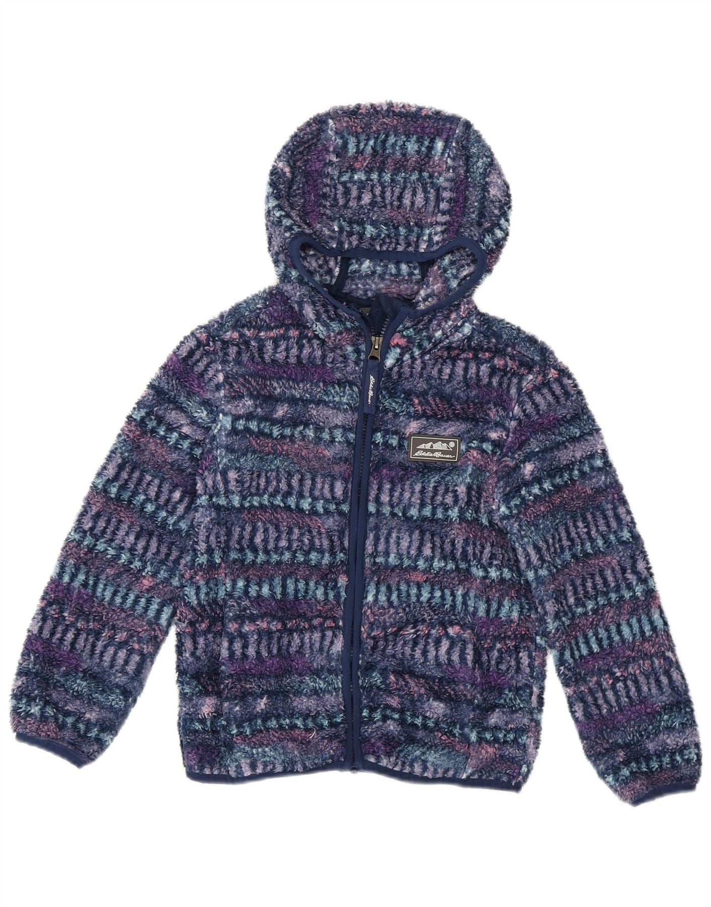 EDDIE BAUER Girls Hooded Fleece Jacket 5-6 Years XS Multicoloured Striped