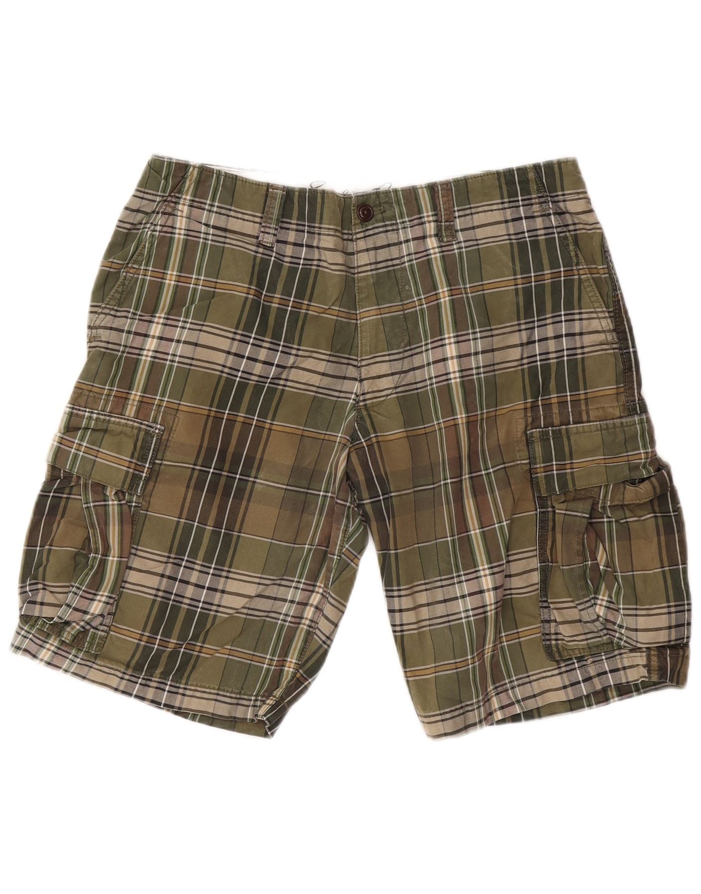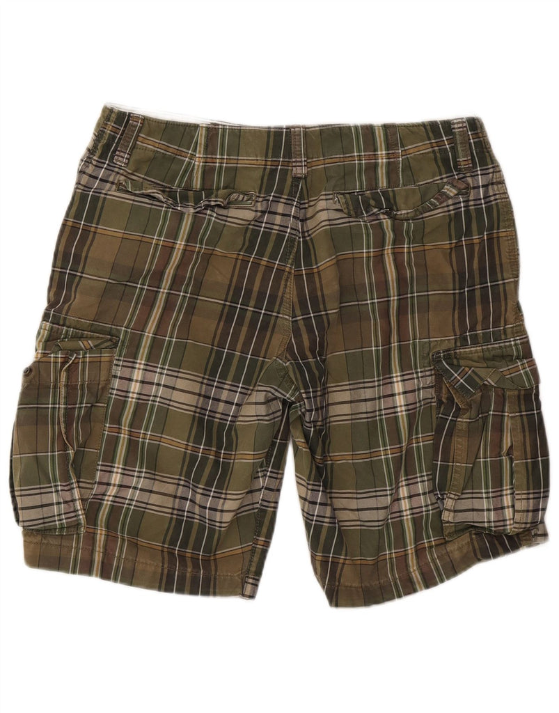 EDDIE BAUER Mens Cargo Shorts W34 Large Green Plaid Cotton