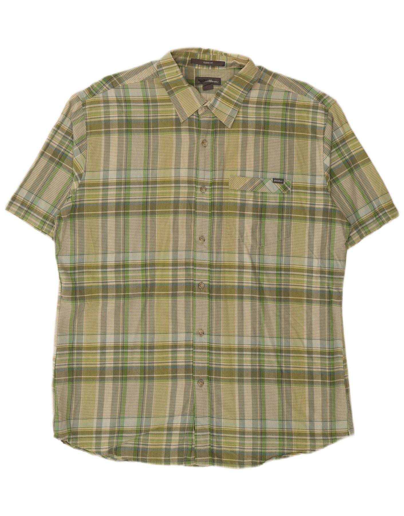 EDDIE BAUER Mens Classic Fit Short Sleeve Shirt Large Green Check Cotton