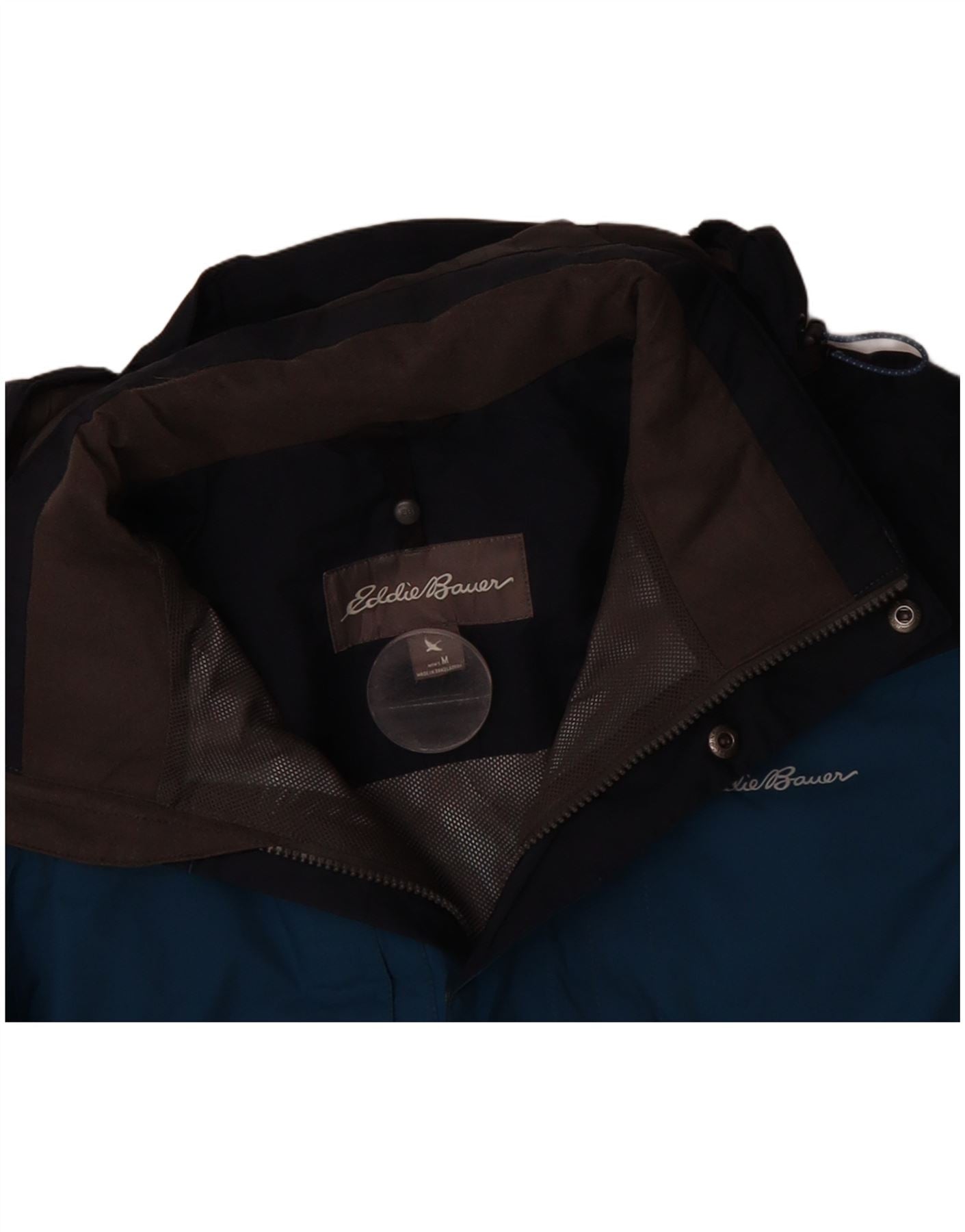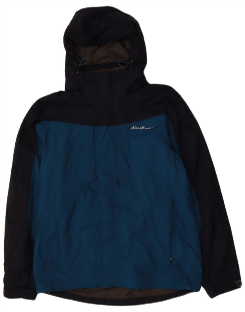 EDDIE BAUER Mens Hooded Rain Jacket UK 38 Medium Blue Colourblock